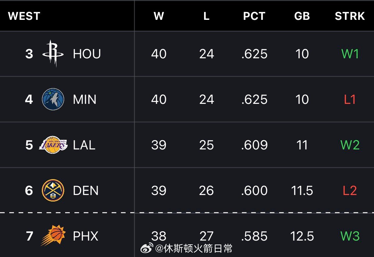 西部3-7名竞争非常激烈,第7和第三不过2.5场差距!火箭剩下18场,现在每场都非常关键了!