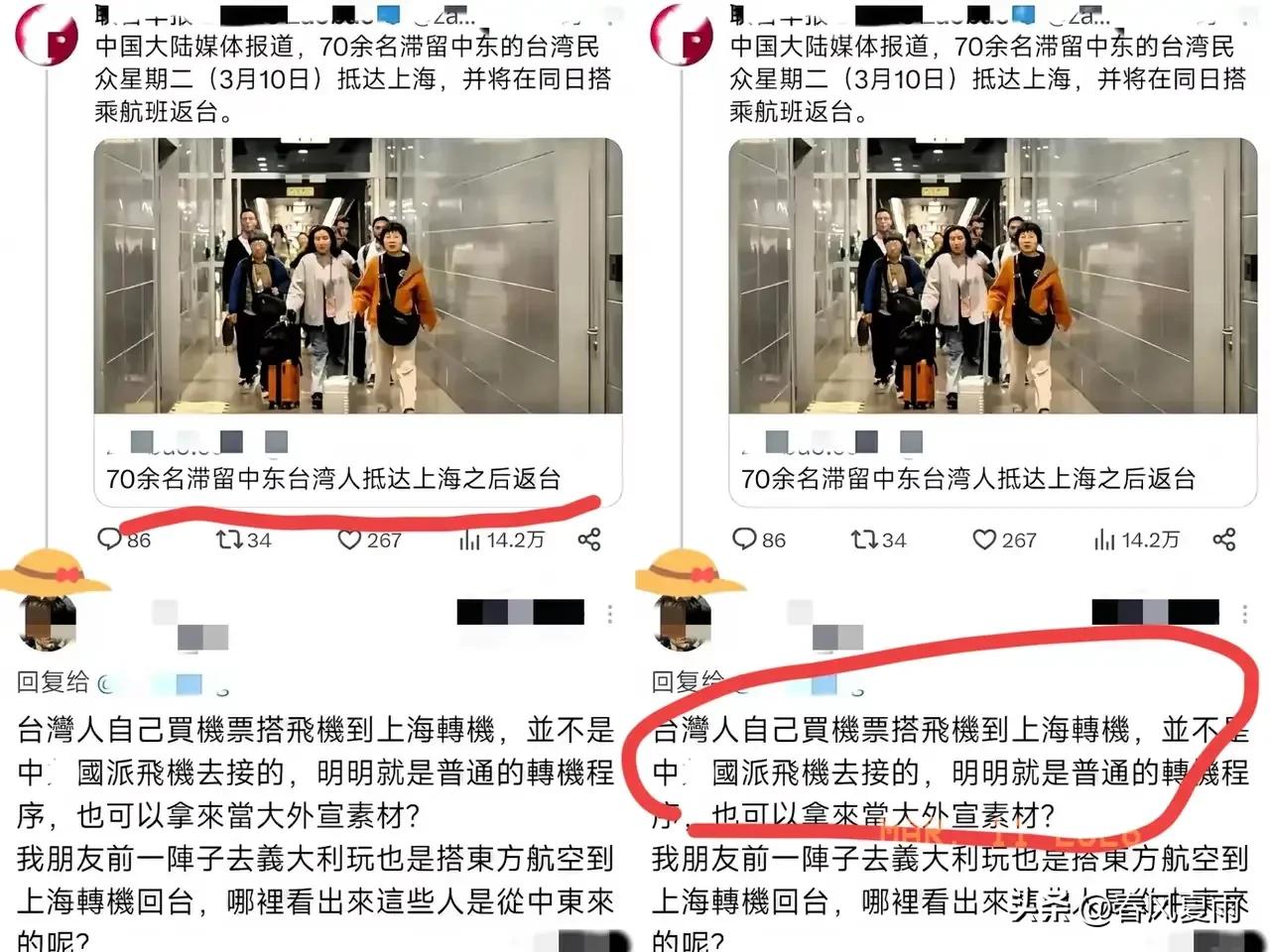 翻脸比翻书还快!回到湾湾就不承认了? 大陆全力协调包机,把70多位在中东滞留多日的台湾同胞安全接回、顺利返台,不少人落地时还真心感谢祖国的帮助。 可这脚刚踏上台湾的土地,某些人立马换了一副嘴脸。台“观光署”那帮人居然轻飘飘来一句“刚好飞机有空位”,硬是把大陆冒着炮火协调的撤侨航班说成是普通购票。这话说出来,他们自己脸红不红?土耳其领空关闭、阿布扎比机场瘫痪的时候,怎么不见“有空位”的飞机去接人?那时候台当局除了让民众在酒店干等,还会干啥 ? 真以为大家不记得前几天那副惨状?那边厢战火纷飞,这边厢台当局两手一摊说“暂无撤侨计划”。两百多号人被困卡塔尔,叫天天不应,哭着联系所谓的“驻外单位”,得到的回复就是“等着吧” 。最后没办法,老百姓只能自己组“自救会”,掏高价包车逃命,甚至有导游直言,那一刻真觉得手里的“护照”还不如一张台胞证好使 。 再看看咱们大使馆怎么做的。战事一起,第一时间开放登记,甭管你手里拿的是哪儿的证件,只要是中国人,统统纳入保护范围 。74个人的旅行团,说撤就撤,从伊斯坦布尔协调东航直飞上海,一路绿灯护送到家 。那位台湾导游李正得落地时激动得声音都发抖,对着镜头连声感谢“祖国”,这种发自内心的踏实感,是“有空位”三个字能抹杀的吗? 说白了,有些岛内政客就是心虚。他们最怕看到的就是这种“患难见真情”的画面,因为大陆用行动证明了自己才是台湾同胞最坚实的后盾,这巴掌打得他们所谓的“抗中保台”口号啪啪响 。所以哪怕民众泪洒机场说谢谢,他们也得捂着耳朵喊“我不听我不听”,转头还得给民众扣顶“被统战”的帽子。这嘴脸,真是把“无能狂怒”四个字写在了脸上。 各位读者你们怎么看?欢迎在评论区讨论。