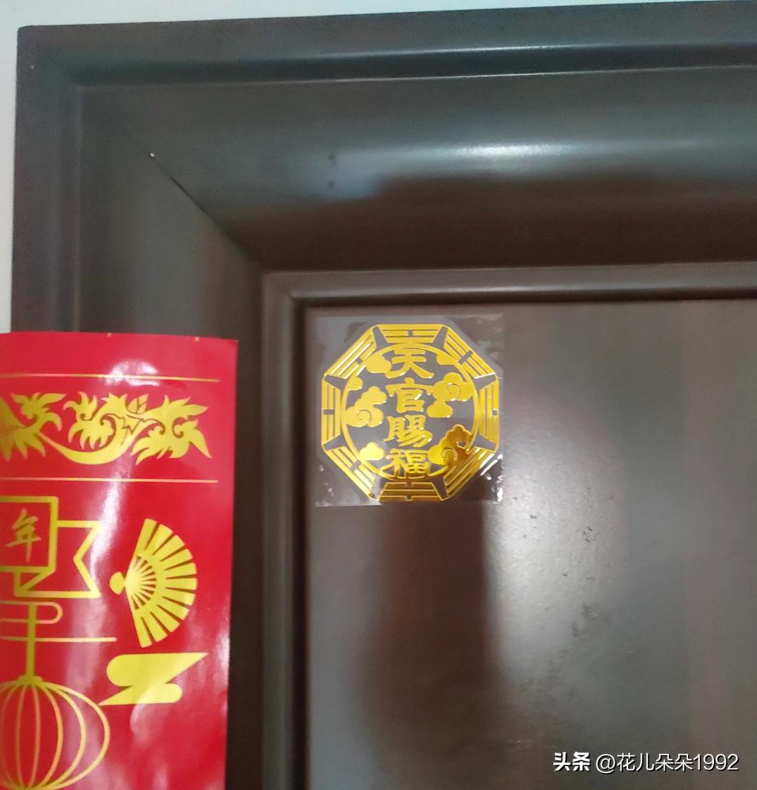 伟大的网友们,对门邻居家门上贴的这两个是什么意思,对我家有没有什么影响?
