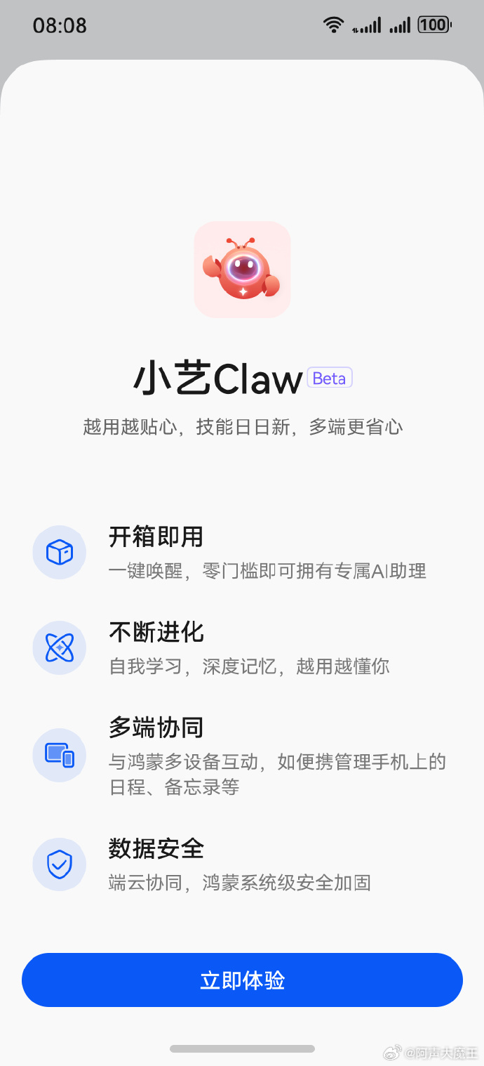 刚刷到何刚总晒的图,华子也开始整龙虾了~开箱即用、零门槛唤醒,还能跟鸿蒙多设备协同,最关键它是自我学习的,越用越懂你!作为办公党,最期待它的文档编辑、写 PPT 和邮件自动化功能,以后上班摸鱼(划掉)办公都有专属助手了。已经迫不及待想体验了,你们准备好解锁自己的专属 AI 了吗?