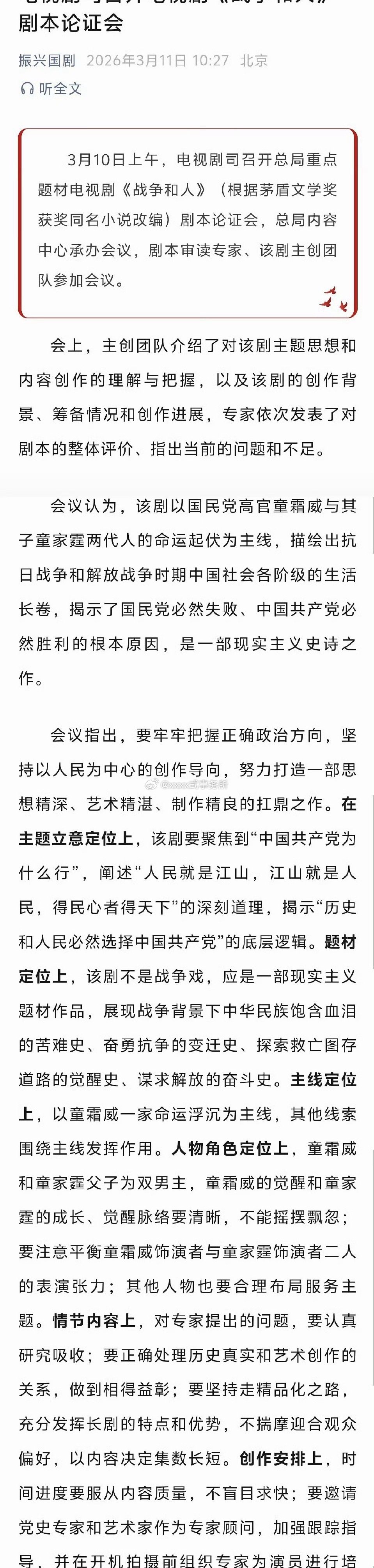 白敬亭战争和人开了剧本讨论会,总局很重视了