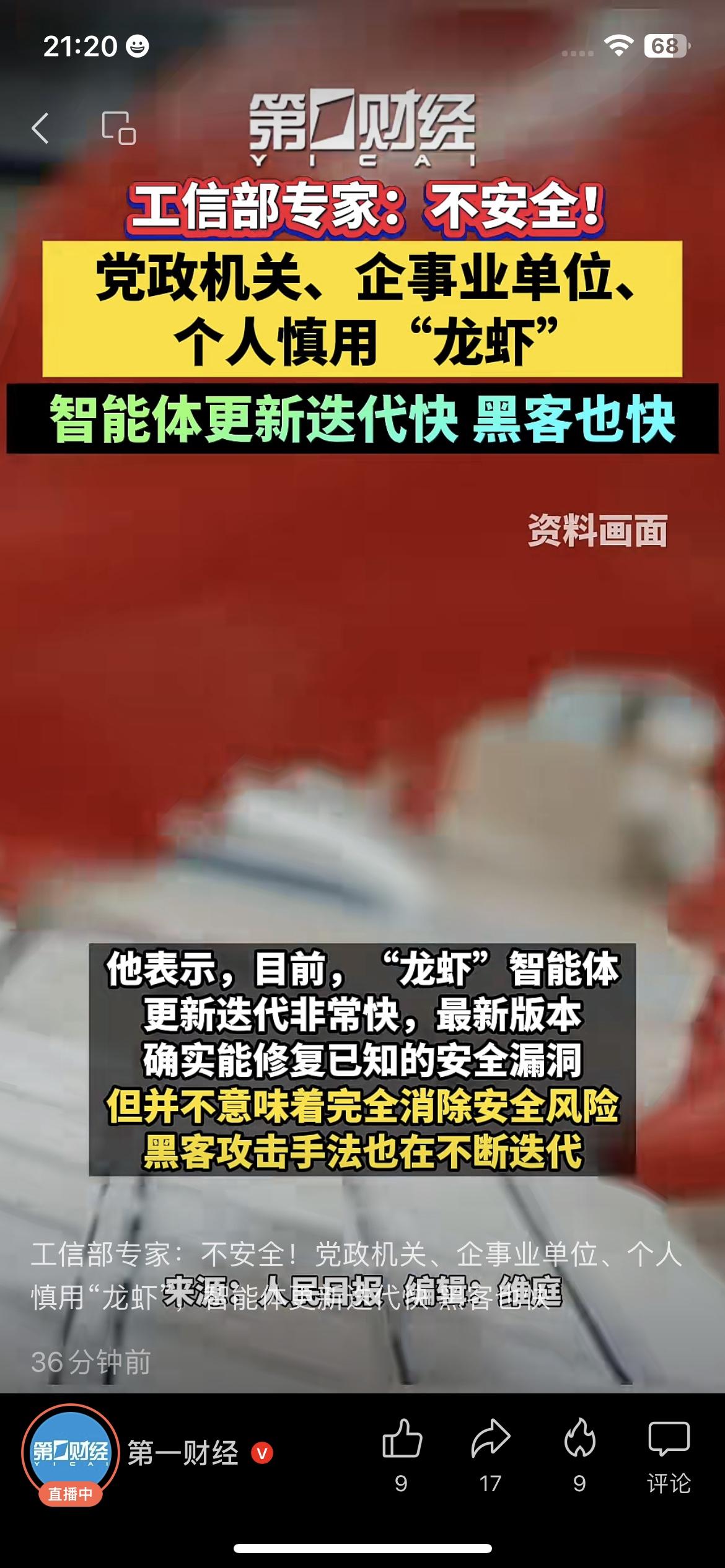 重磅预警!工信部专家明确表示:“龙虾”智能体不安全,党政机关、企事业单位、个人用户务必审慎使用! 智能体更新迭代快,能修复已知漏洞,但安全风险从未消失,黑客攻击手法也在不断升级。 “龙虾”推动AI生态繁荣,但强执行能力的背后,是严峻的安全挑战,千万别盲目跟风用! 龙虾智能体 AI安全