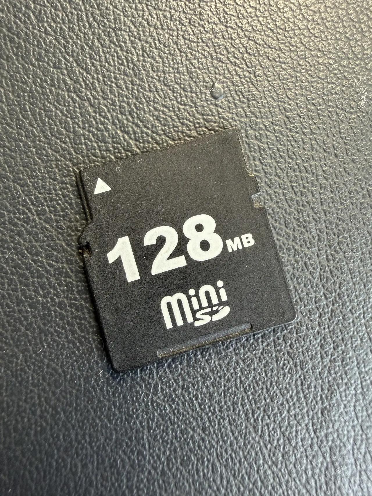 你没看错 这个是128MB的卡。相信很多人都没见过这种卡了,这是miniSD卡,和现在动辄GB起的存储卡相比,当时128MB的卡也是有市场的。内存卡 手机卡 什么东西啊