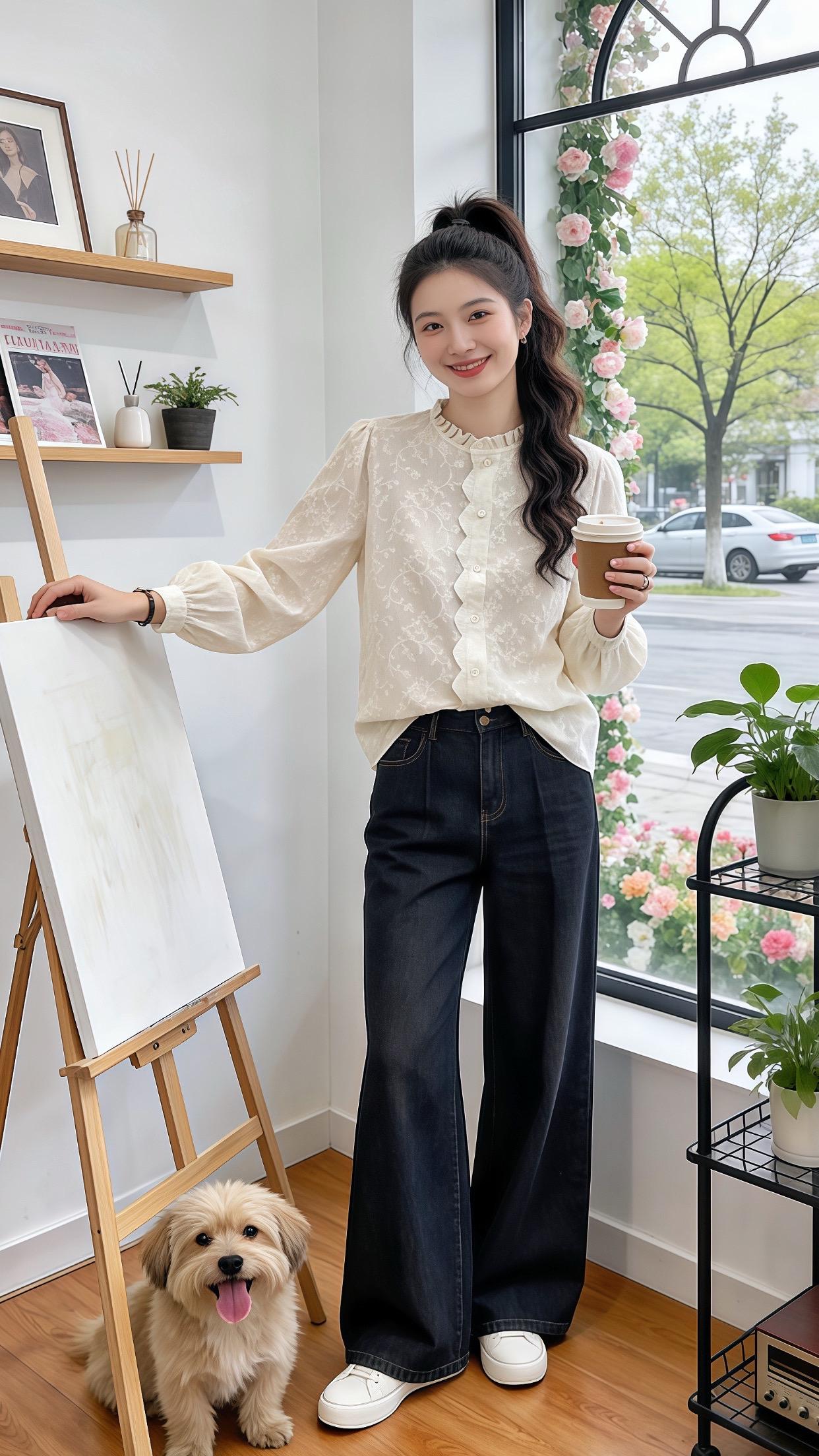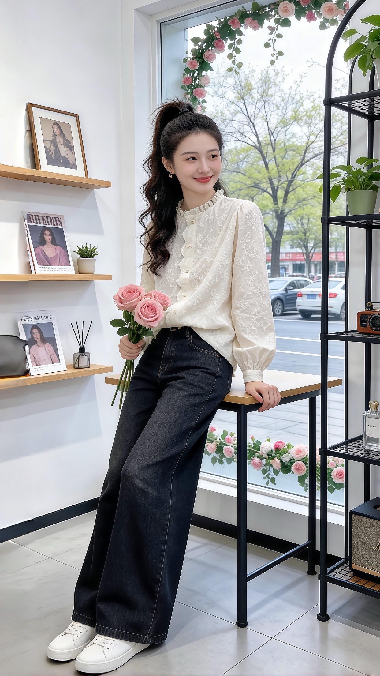刘浩存用自己证明:修身裤比宽松裤好看太多。