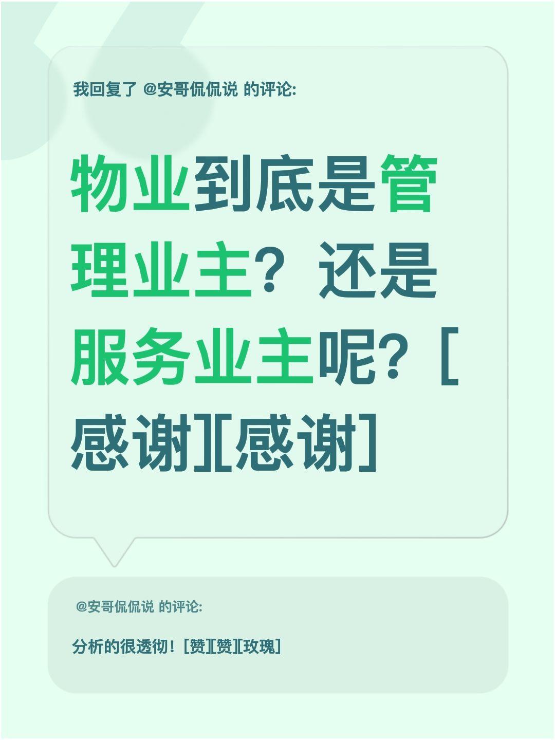 管理?服务?您说呢?我评论了@安哥侃侃说 的作品: 物业到底是管理业主?还是服务业主呢?[感谢][感谢]