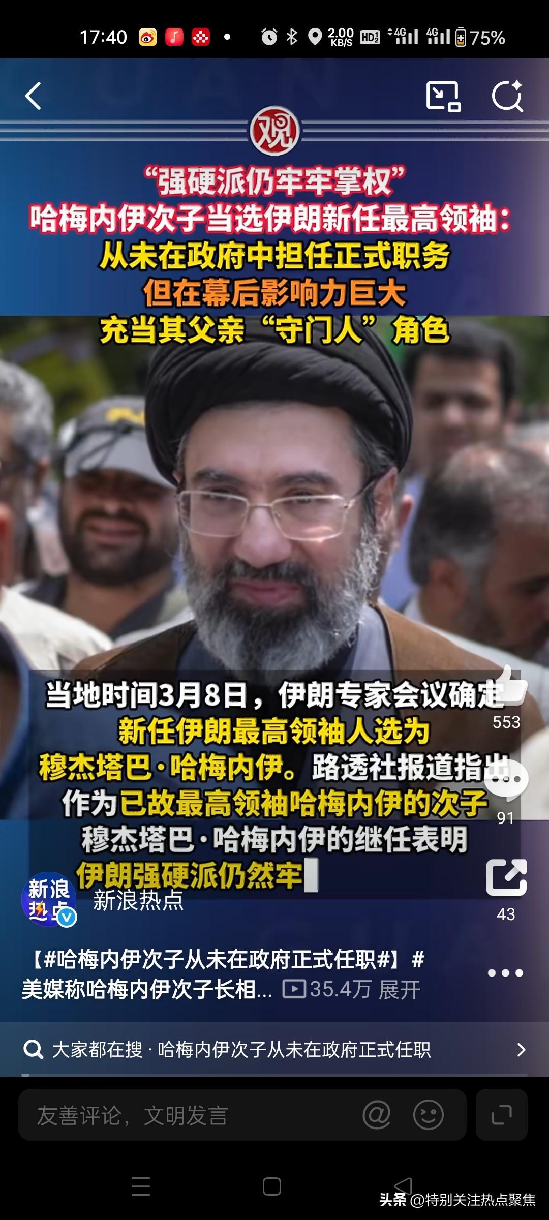 伊朗新任最高领袖后始终未公开露面,其神秘状态引发外界对安全威胁与健康问题的多重猜测。 一、未公开露面的核心原因 安全威胁迫在眉睫 以色列国防军此前明确宣称将“追杀继任者”,且以军持续对德黑兰等地发动空袭,任何通讯或公开活动均可能暴露行踪。伊朗官员透露,穆杰塔巴目前身处高度防护、通讯受限的地点。@新华社1920 空袭中受伤影响行动 据《纽约时报》报道及三名伊朗官员证实,穆杰塔巴在2月28日美以联合空袭首日腿部等多处受伤。尽管伊朗总统之子优素福·佩泽希齐扬称其“平安”,但以色列情报部门与美媒均指出伤情属实,且需静养恢复。@环球市场播报122新华社 二、紧急权力交接的特殊背景 战时状态下的非常规程序 专家会议秘书处曾遭轰炸致人员伤亡,最终通过紧急线上会议推举穆杰塔巴。革命卫队主导快速交接,打破常规流程,以确保政权延续。@中国新闻网413 家族悲剧强化战时形象 穆杰塔巴在空袭中失去父亲(前最高领袖哈梅内伊)、母亲、妻子、一名子女及多名亲属。这一惨痛背景使其被视为“复仇象征”,亦成为其回避公开活动的隐性因素。@中国新闻周刊820中国新闻网 三、低调作风与权力基础的矛盾性 长期幕后掌权的“守门人” 穆杰塔巴虽未担任正式公职,但过去二十年实际掌控革命卫队情报网络、经济资源及媒体宣传机器,被西方称为最高领袖办公室的“实际操盘手”。@观察者网613 宗教资历不足的合法性挑战 作为中级神职人员(霍贾特伊斯兰),其宗教地位未达传统最高领袖标准。但革命卫队及武装部队总参谋部已集体宣誓效忠,强调其“整合资源能力”与“对敌斗争经验”。@财新网1213新浪热点 四、外界对伊朗政策的预判 短期强硬路线难以扭转 革命卫队表态可维持高强度战争至少六个月,穆杰塔巴的家族血仇及军方背景预示其对美以更趋对抗。胡塞武装等地区盟友已发声支持,称其当选是“对敌人的重大打击”。@看看新闻Kn...211 长期战略存双向可能性 分析认为,穆杰塔巴或短期加大导弹袭击与代理人攻势,同时通过第三方与美秘密接触,预留谈判空间。但其首要任务仍是平衡战时经济困境与政权存续。@大河报1013中国新闻网 关键矛盾信息梳理 争议点 伊朗官方说法 外媒与情报信源 穆杰塔巴伤情 总统之子称“平安” 《纽时》证实腿部受伤 公开露面计划 国家电视台称“将讲话” 讲话取消,原因未公布伊朗领袖交权 伊朗最高指挥官