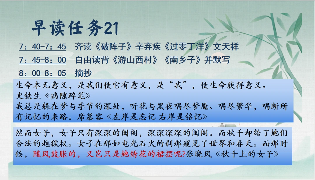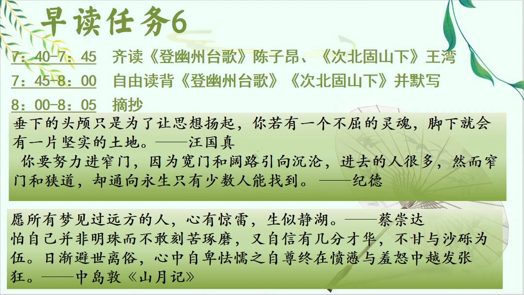 诗意中考语文早读任务课件来啦