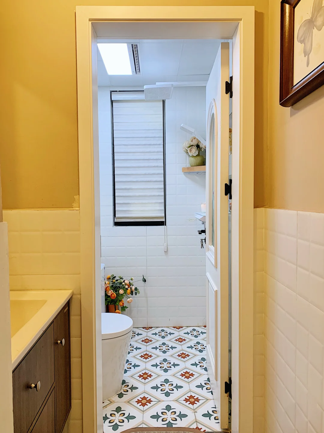 白色哑光砖+复古小花砖倒也清新