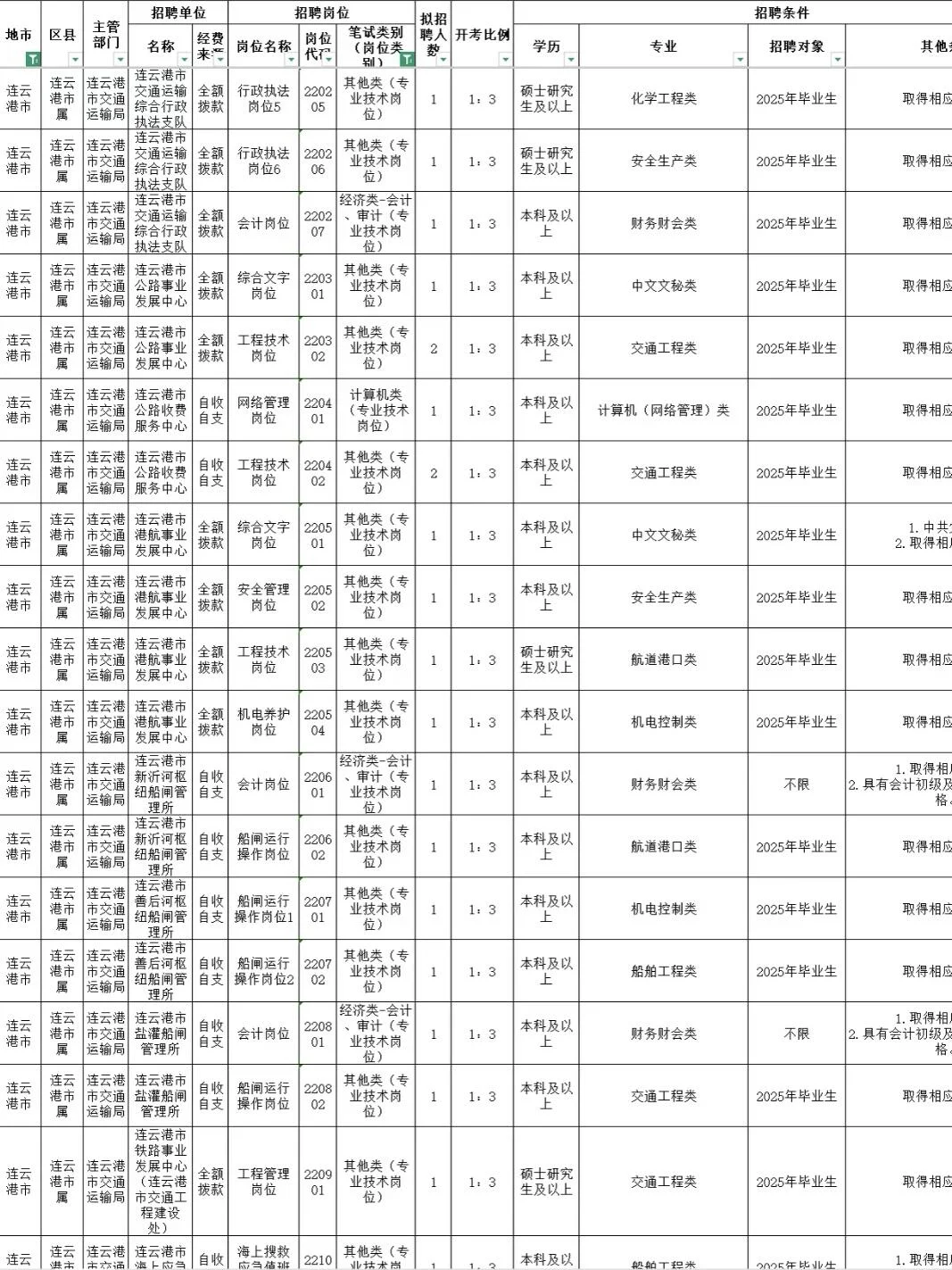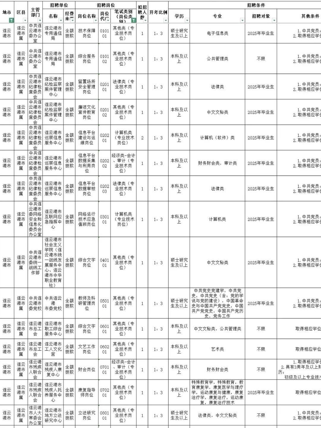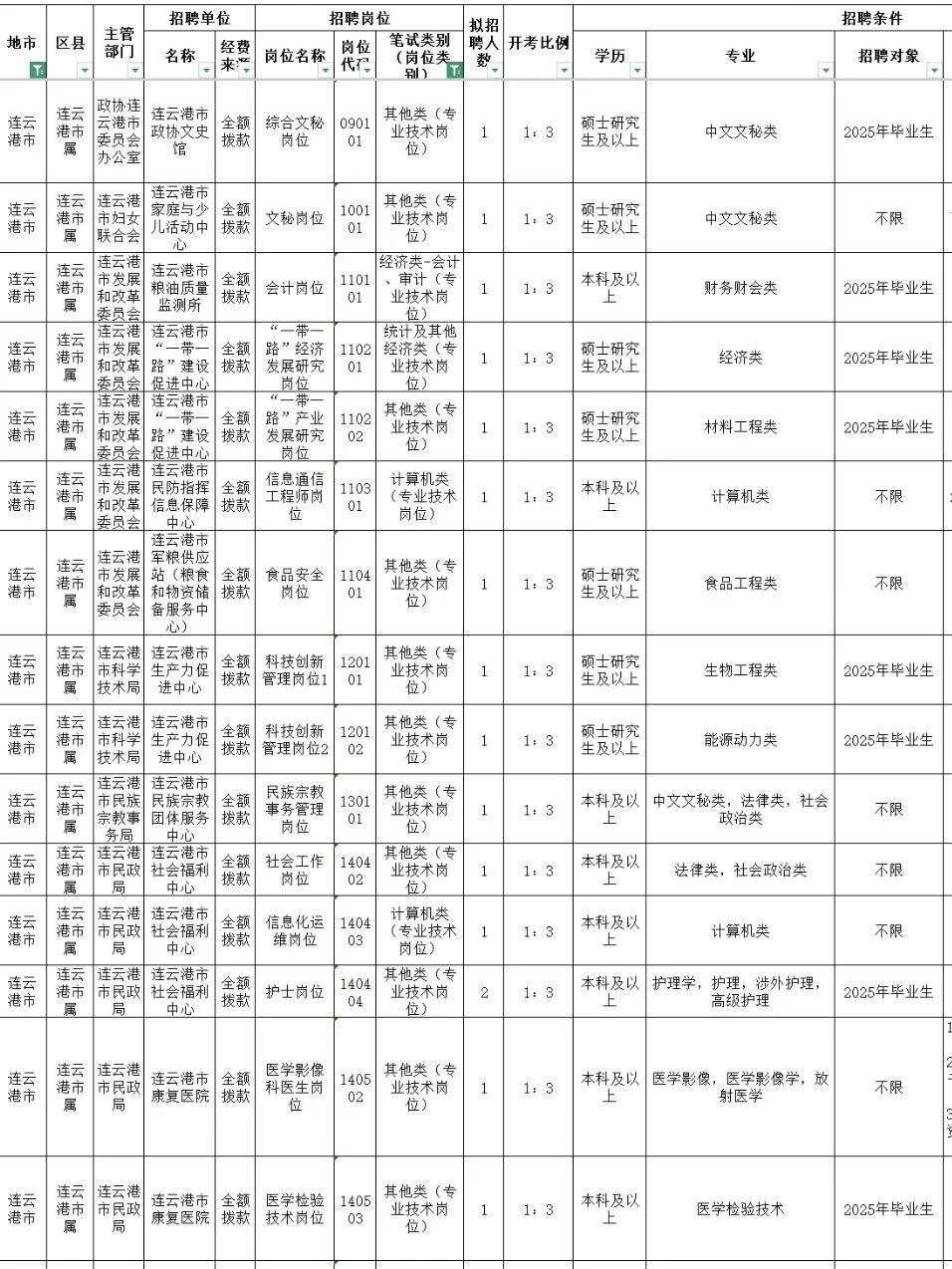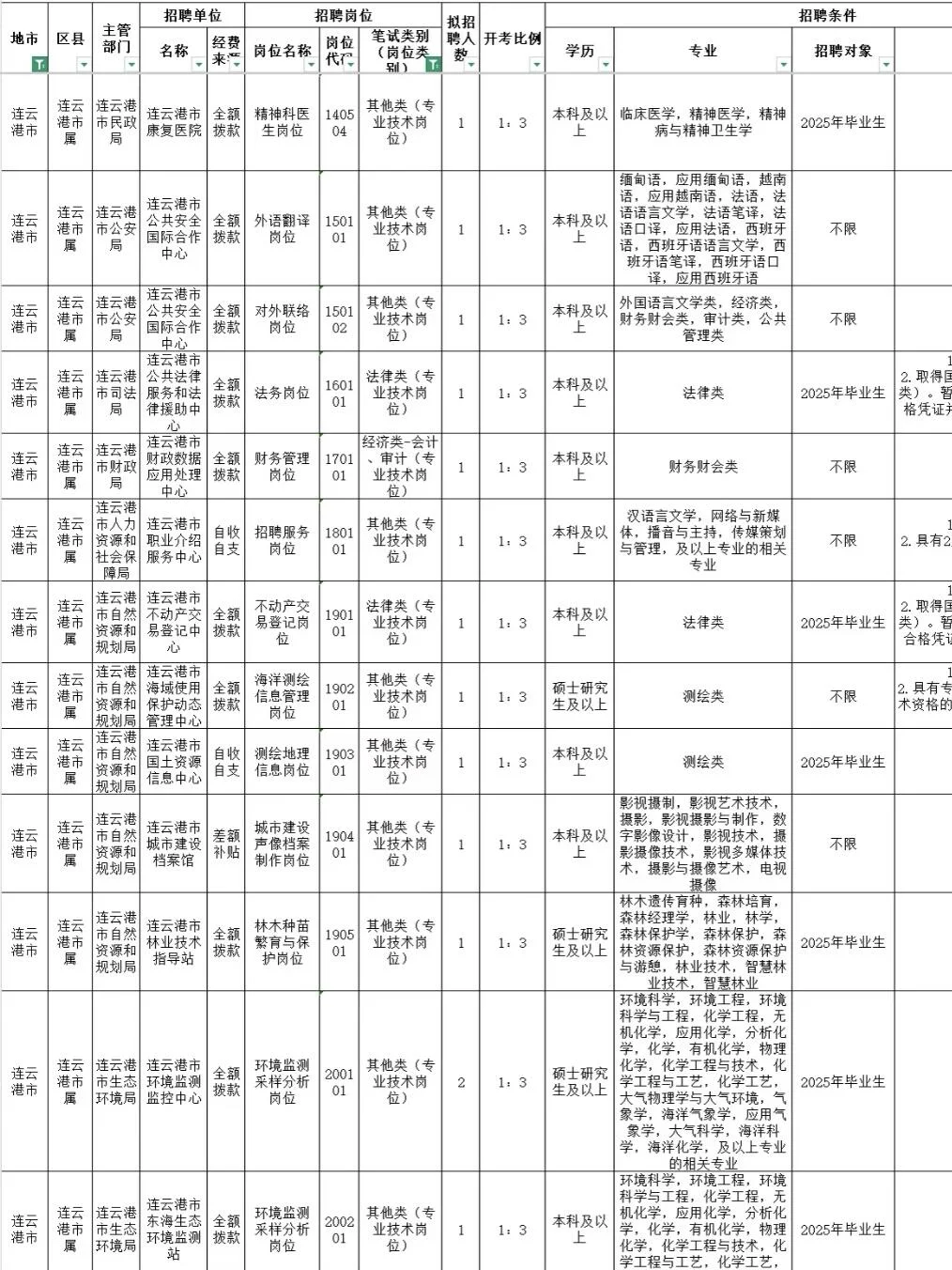 全部有编[种草R] 宝子们!连云港事业单位马上开始报名了还有人没选岗吗?!预计3月中旬出公告,4月笔试,给大家整理好了25连云港事业编岗位表进面分,备考事业编的宝子们记得提前选岗参考! [种草R]25年共招岗位数150+,整体平均竞争比为72.83:1,平均进面分数近70分 想要报考26年连云港事业编的同学,选岗可以参考往年岗位信息和进面分,筛选适合的,结合进面分和报录比排除一些竞争大的,让备考更有方向!