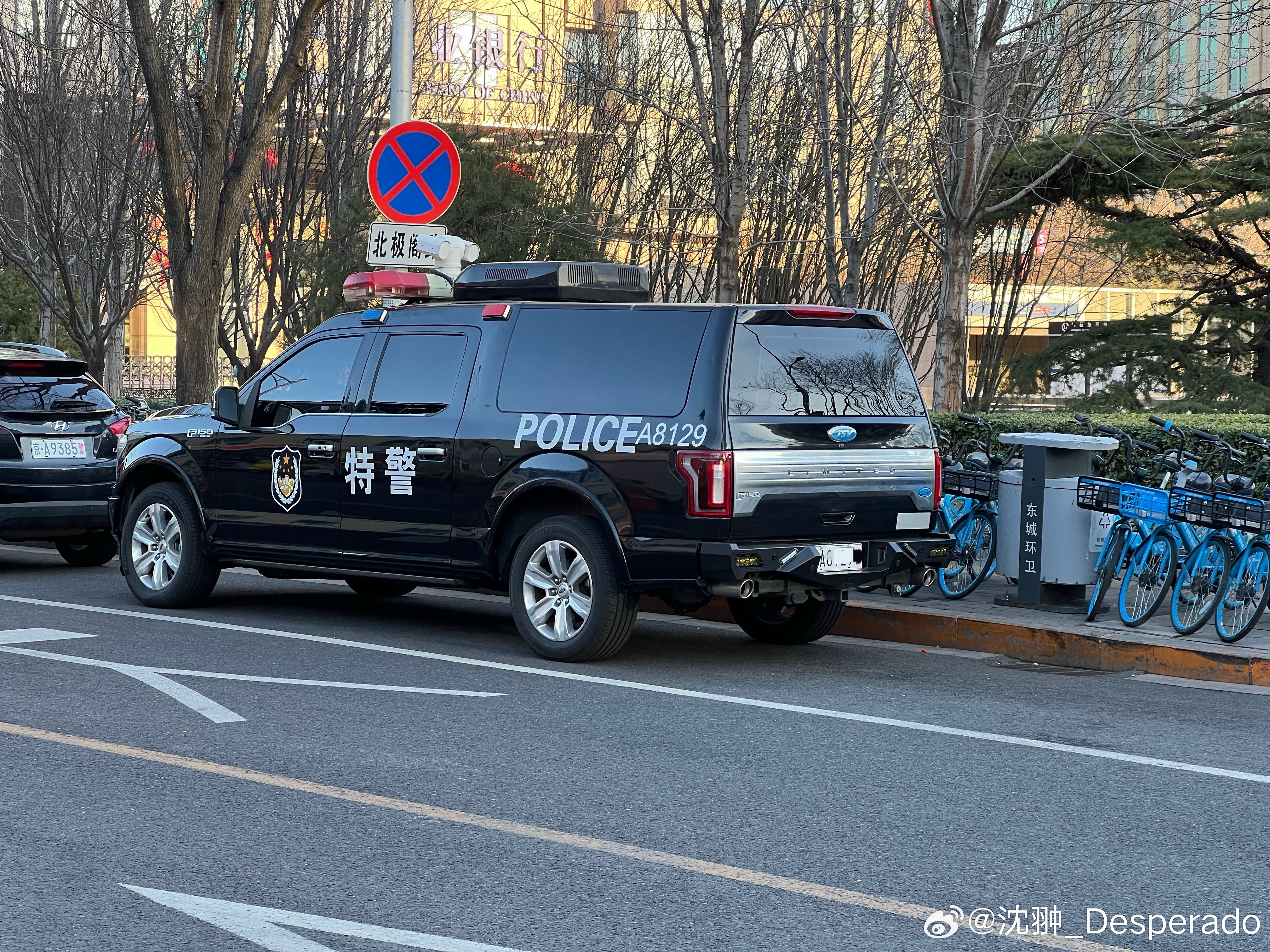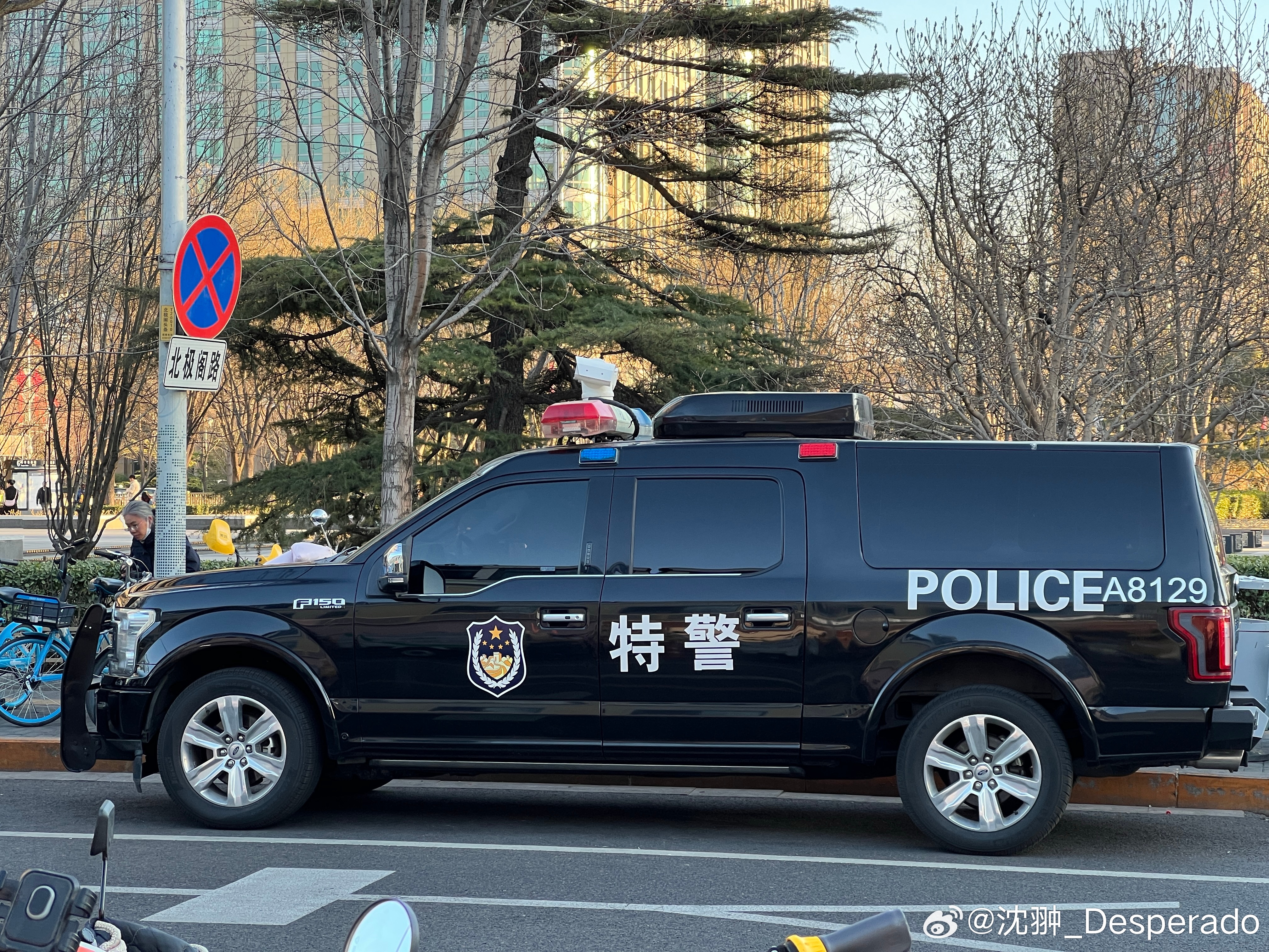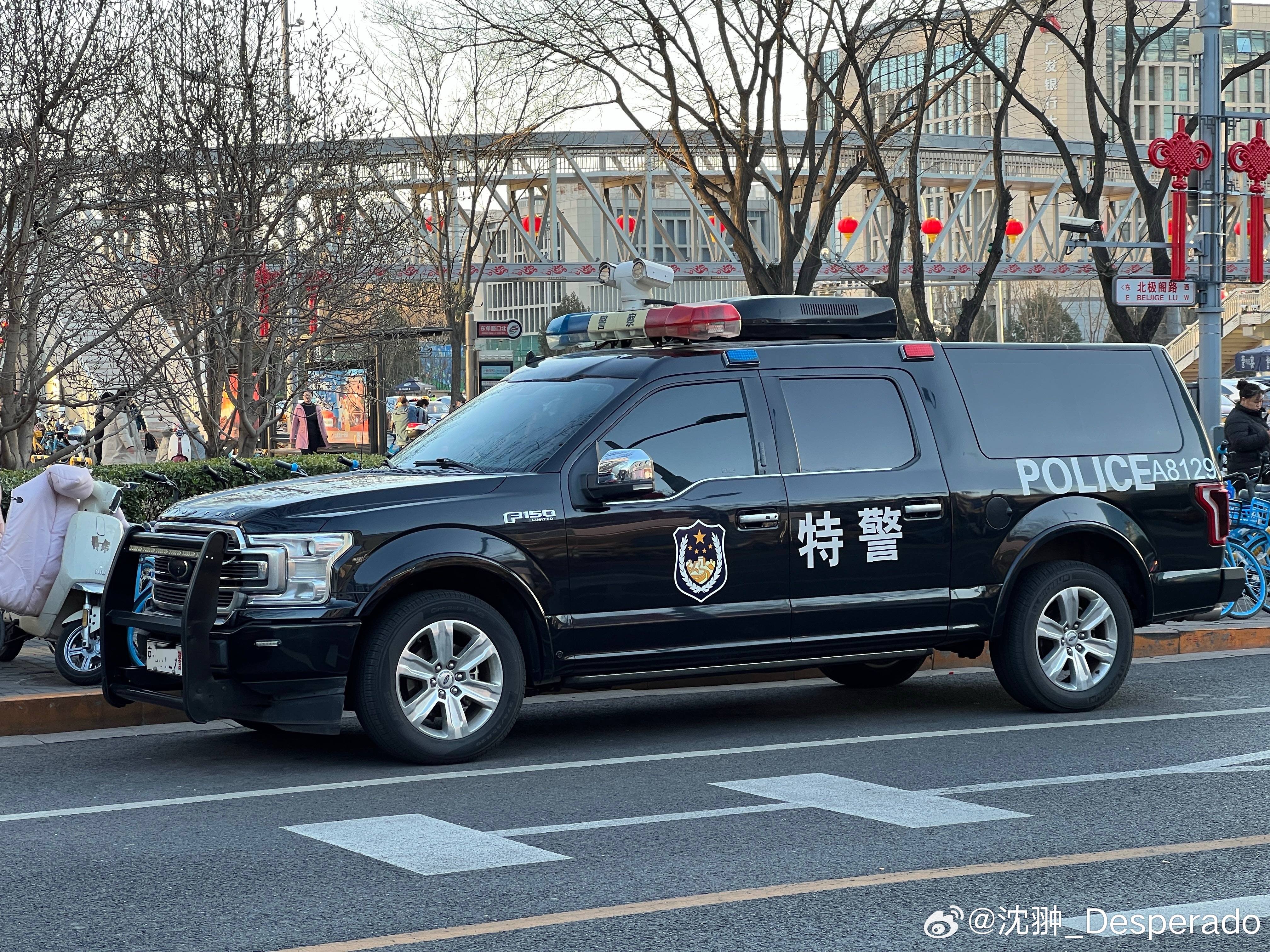 经过江铃汽车改装公司升级改造的福特F150特警车型。说起来挺拗嘴。但它目前只能挂
