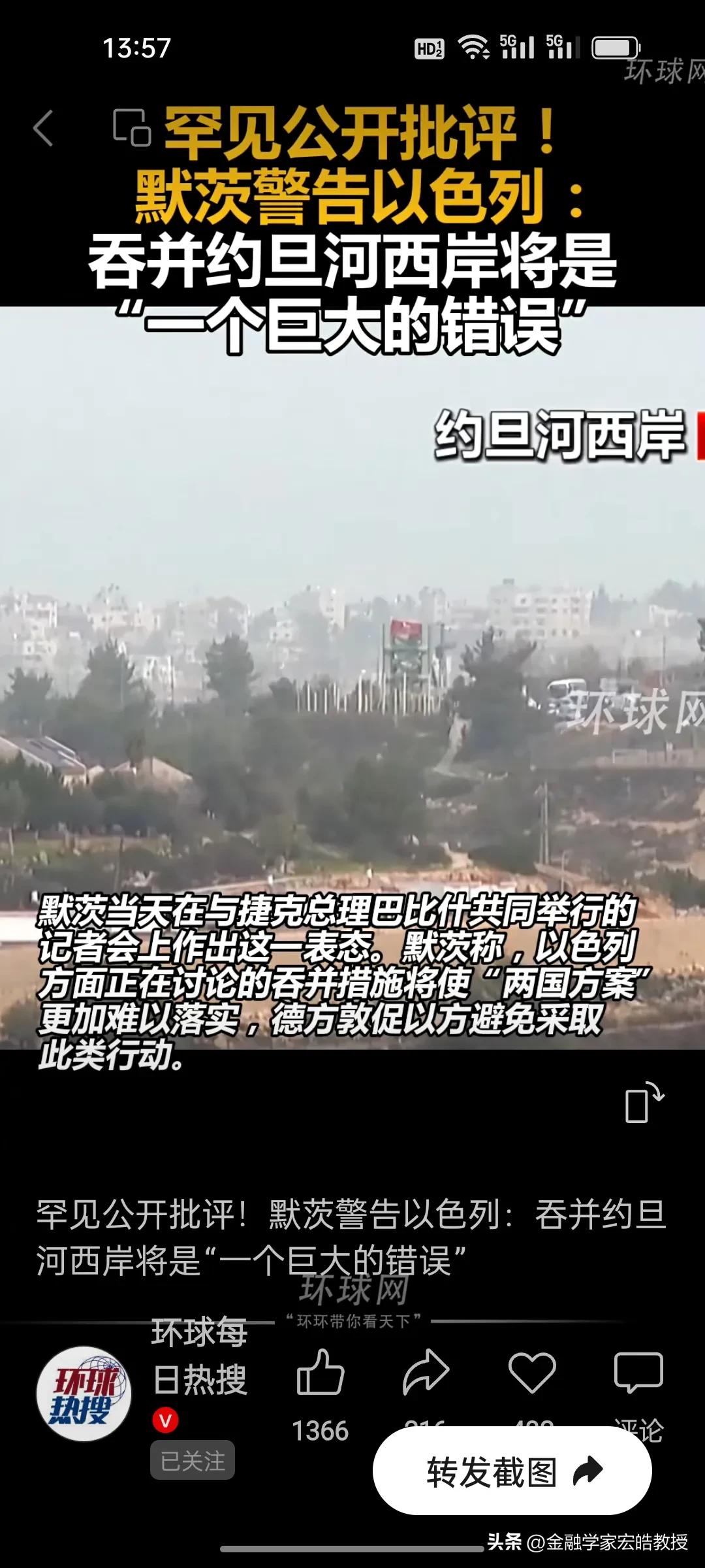 很罕见啊!德国总理默茨竟然硬刚以色列,一点不给特朗普面子,背后藏着欧洲的清醒与焦虑! 昨天,德国总理默茨在访美之后公开警告:以色列吞并约旦河西岸是“巨大错误”,这是欧洲领导人首次如此直白批评盟友。 他戳破的不只是以方的扩张野心,更是对“两国方案”的守护——一旦吞并,中东和平进程将彻底锁死。而美伊冲突升级的当下,欧洲最怕中东战火再扩张,那么能源、难民危机一定会反噬欧洲所有国家。 一边是美国的偏袒,一边是现实的危机,“吹哨人”默茨的清醒,其实是欧洲的求生欲。
