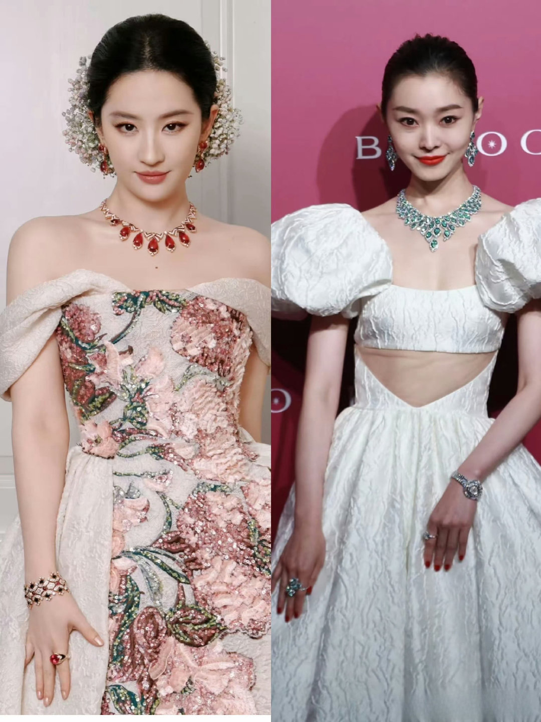 是不是人太好看就会把珠光宝气掩盖?刘亦菲和宋轶都戴了这么大的项链却还是让人第一眼看脸。