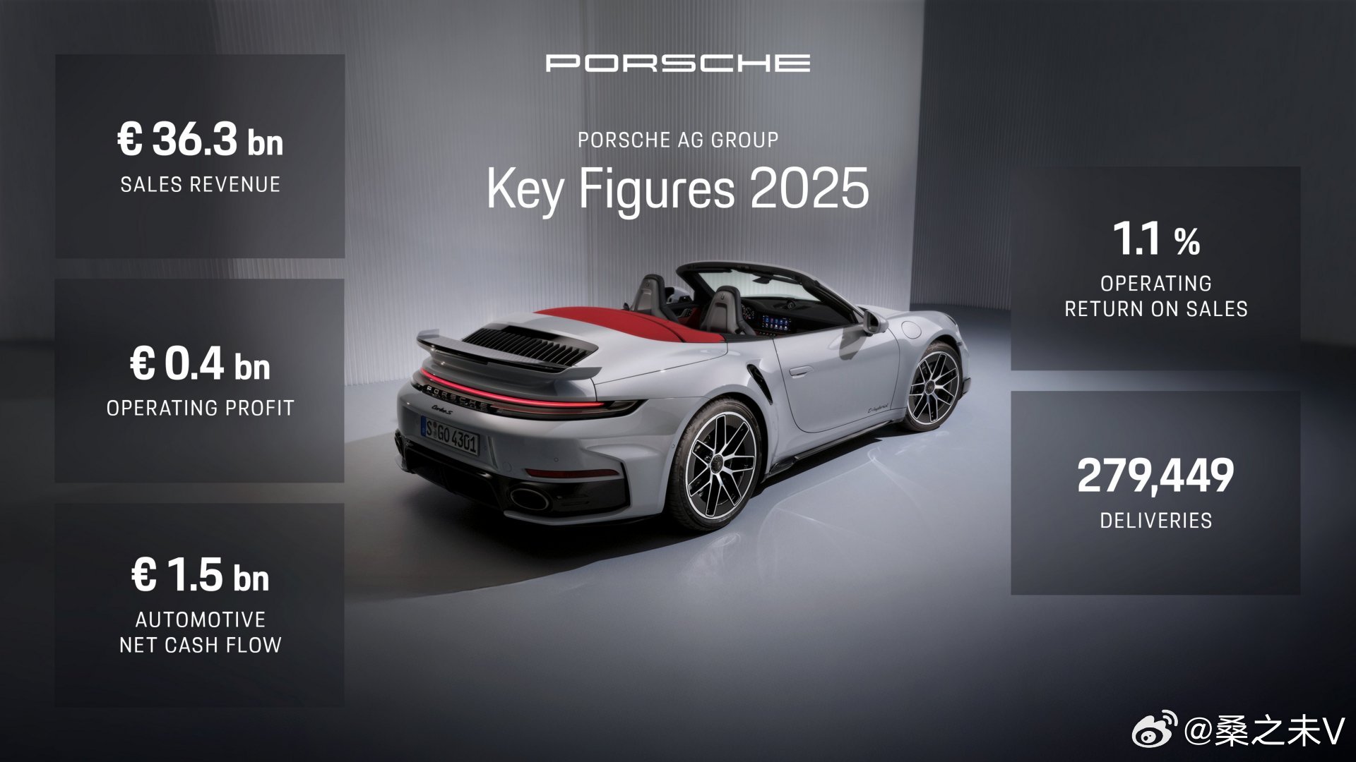 2025财年是保时捷战略调整的关键落地期,核心经营数据呈现业绩承压但财务根基稳健的鲜明特征,且所有数据均处于此前调整后的预测区间内。财报显示,集团全年营业收入362.7亿欧元(2024年400.8亿欧元,同比下滑9.5%);受约39亿欧元特殊支出影响,集团营业利润从2024年56.4亿欧元大幅降至4.13亿欧元(0.41 billion euros),同比暴跌92.7%,营业销售回报率(operating return on sales)从14.1%降至1.1%;汽车业务EBITDA利润率降至13.3%,虽较2024年22.7%大幅下滑,但仍高于调整后预测值。