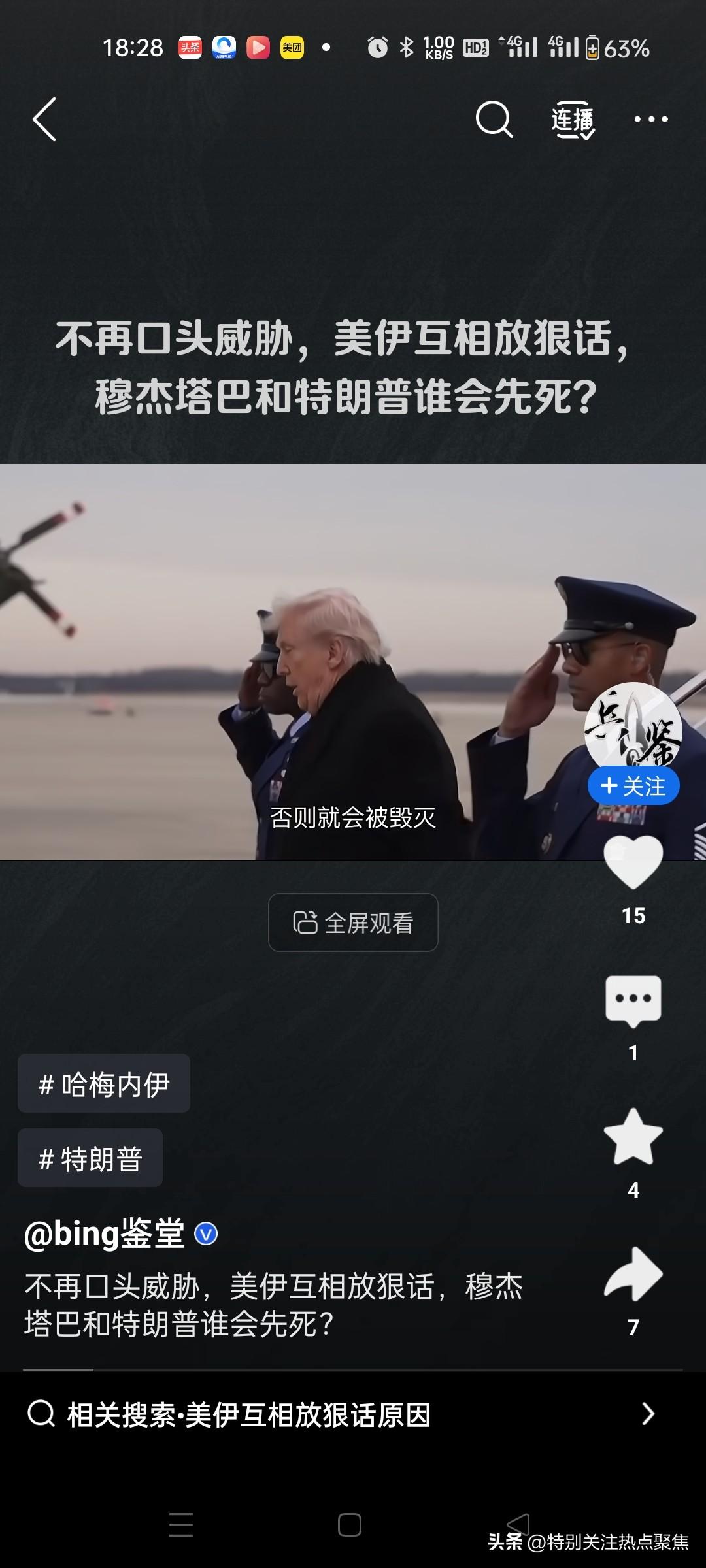 美伊相互放狠话,小哈梅内伊和特朗普谁先挂 从现有信息来看,哈梅内伊已在美以针对他的军事行动中丧生,而特朗普和小哈梅内伊(穆杰塔巴·哈梅内伊)均面临后续安全威胁,不过哈梅内伊的离世时间早于当前局势中的其他角色。 事件核心脉络 哈梅内伊遇袭身亡:2026年2月28日,以色列总理内塔尼亚胡向特朗普提供伊朗最高领袖哈梅内伊的具体行程情报后,美军发动袭击致其死亡。此举突破了国际冲突中“不以刺杀对方首领为目标”的传统底线,被专家视作危险先例。@观察者网2 伊朗社会全面动员复仇:哈梅内伊死后,伊朗官方延迟26小时才公布消息,随后全国哀悼并进入高度动员状态。伊朗民众反美情绪高涨,让局势陷入“难以理性解决”的僵局。1观察者网 特朗普与小哈梅内伊的当前风险 特朗普的困境: 决策非理性化:袭击哈梅内伊后,特朗普被指“失去理性”,既无法向国内交代行动后果,又难以应对伊朗的复仇压力。他近期表态矛盾,先是宣称“战争几乎结束”,后又改口“本周不会结束战争”,尽显进退两难。3 人身威胁升级:特朗普公开承认自己“曾是暗杀目标”,暗示与小哈梅内伊面临相似风险,但未排除继续针对伊朗新领袖的行动。3 小哈梅内伊(穆杰塔巴)的接任与威胁: 哈梅内伊之子穆杰塔巴被确立为伊朗新任最高领袖,特朗普对此表示“失望”,并透露美国可能介入伊朗领导人遴选,甚至考虑沿用“委内瑞拉模式”(即外力干预政权更替)。3 特朗普虽未直接确认会暗杀穆杰塔巴,但其表态显示美方仍将伊朗新领袖列为潜在目标,使穆杰塔巴的安全风险极高。3 事件影响与未来走向 国际规则崩塌:美以行动被批“比丛林社会更野蛮”,可能引发其他国家效仿针对领导人的刺杀行为,导致全球冲突失控。1 中东泥潭风险:美国被指可能重蹈越南、阿富汗战争覆辙,因伊朗的全面动员而陷入长期消耗战。13 唯一缓和可能:专家认为,唯有当形势恶化到“无法收拾”时(如双方损失过大),才可能迫使特朗普或伊朗让步,但代价将更为沉重。1 总结:哈梅内伊已于2026年2月28日离世,是当前冲突中“最先离场”的核心人物。特朗普和穆杰塔巴均面临持续的生存威胁,但特朗普因主动挑起危险先例深陷政治与安全困境,而穆杰塔巴作为伊朗新领袖,直接处于美方的潜在打击目标范围内,风险更为紧迫。伊朗遇刺 哈梅内伊遇袭 梅哈内伊