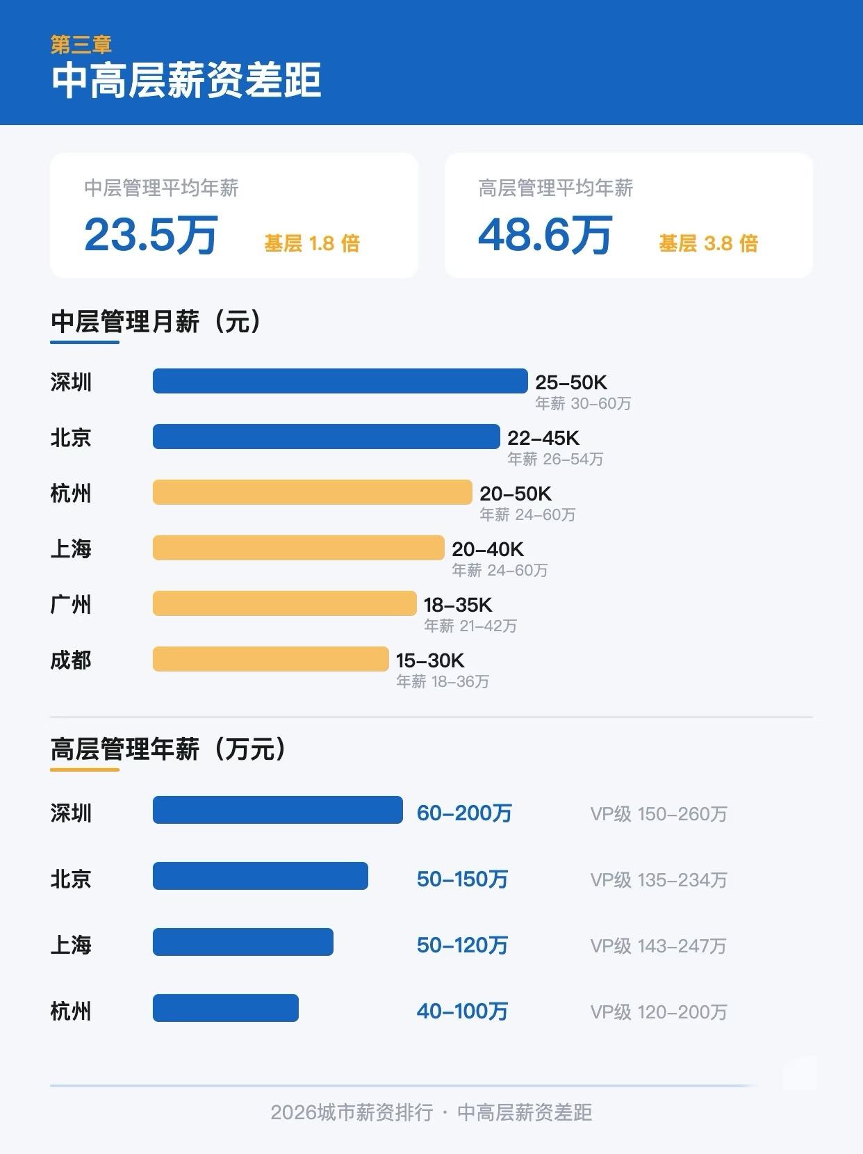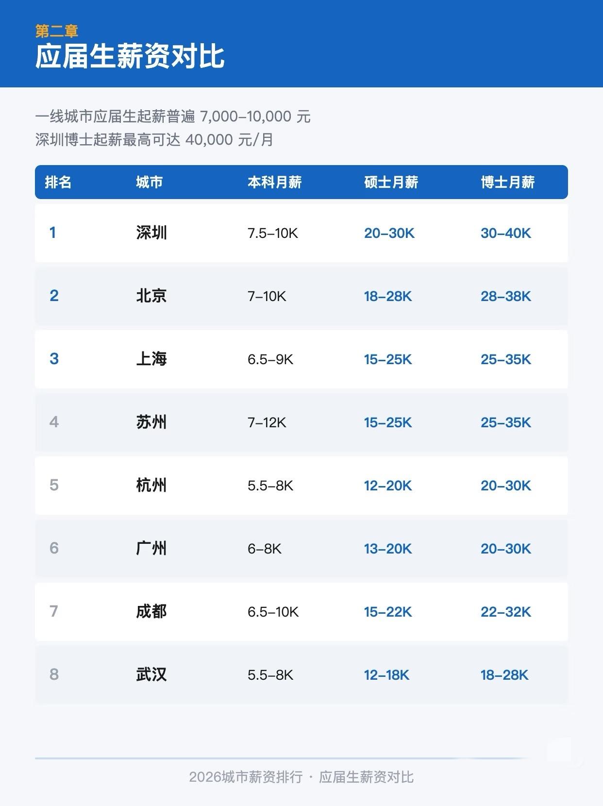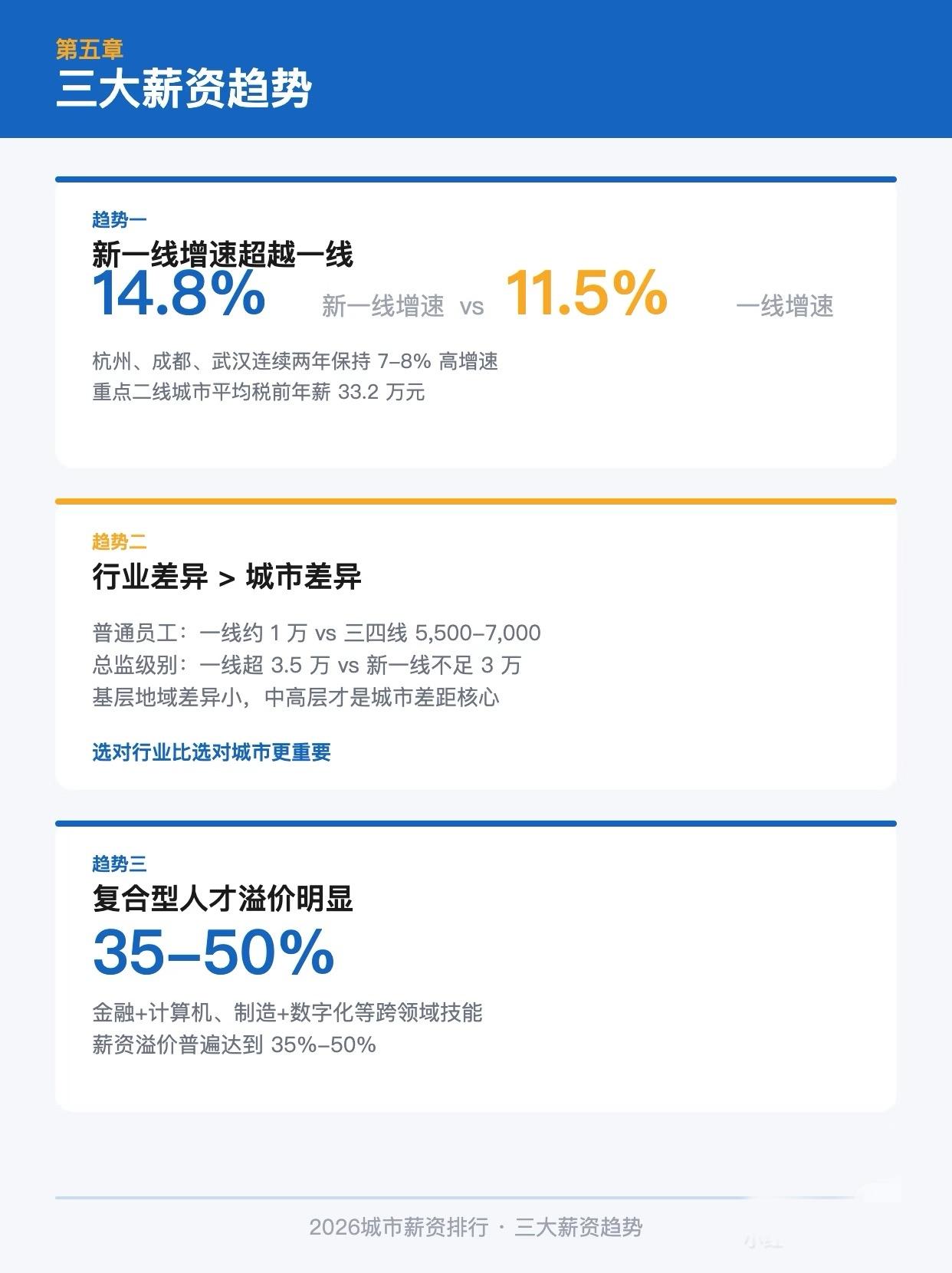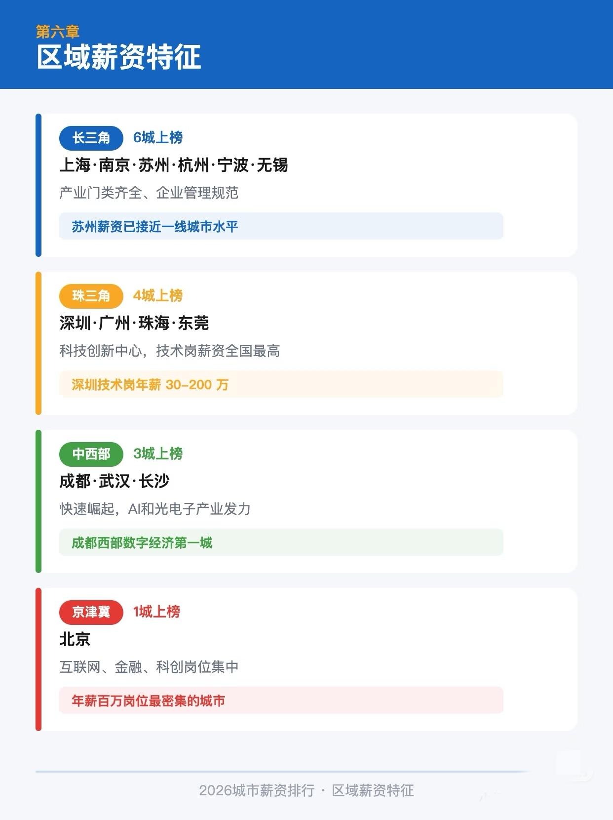 15城薪资差距有多大 很多人看工作机会,第一眼只盯着工资数字,但真正把收入拉开的,往往不是城市名字本身,而是行业、岗位层级和个人能力结构。 看完这组图会很明显,一线城市机会密度更高,新一线城市的性价比也在抬升。对不同阶段的人来说,结论并不一样。应届生更该看起薪和行业入口,工作几年后更该看中高层空间、区域产业结构和长期上升通道。 同样一份薪资,在不同城市的体感差别其实很大。房租、通勤、行业集中度、跳槽机会、成长速度,都会直接影响你对一份工作的真实判断。所以选城市,真的不能只看表面工资。 如果你最近正在找工作、准备跳槽,或者纠结该去一线还是新一线,这 8 页可以收藏起来慢慢对照。看完你大概率会重新想一遍,到底该优先选高工资、好行业,还是更稳的生活成本。