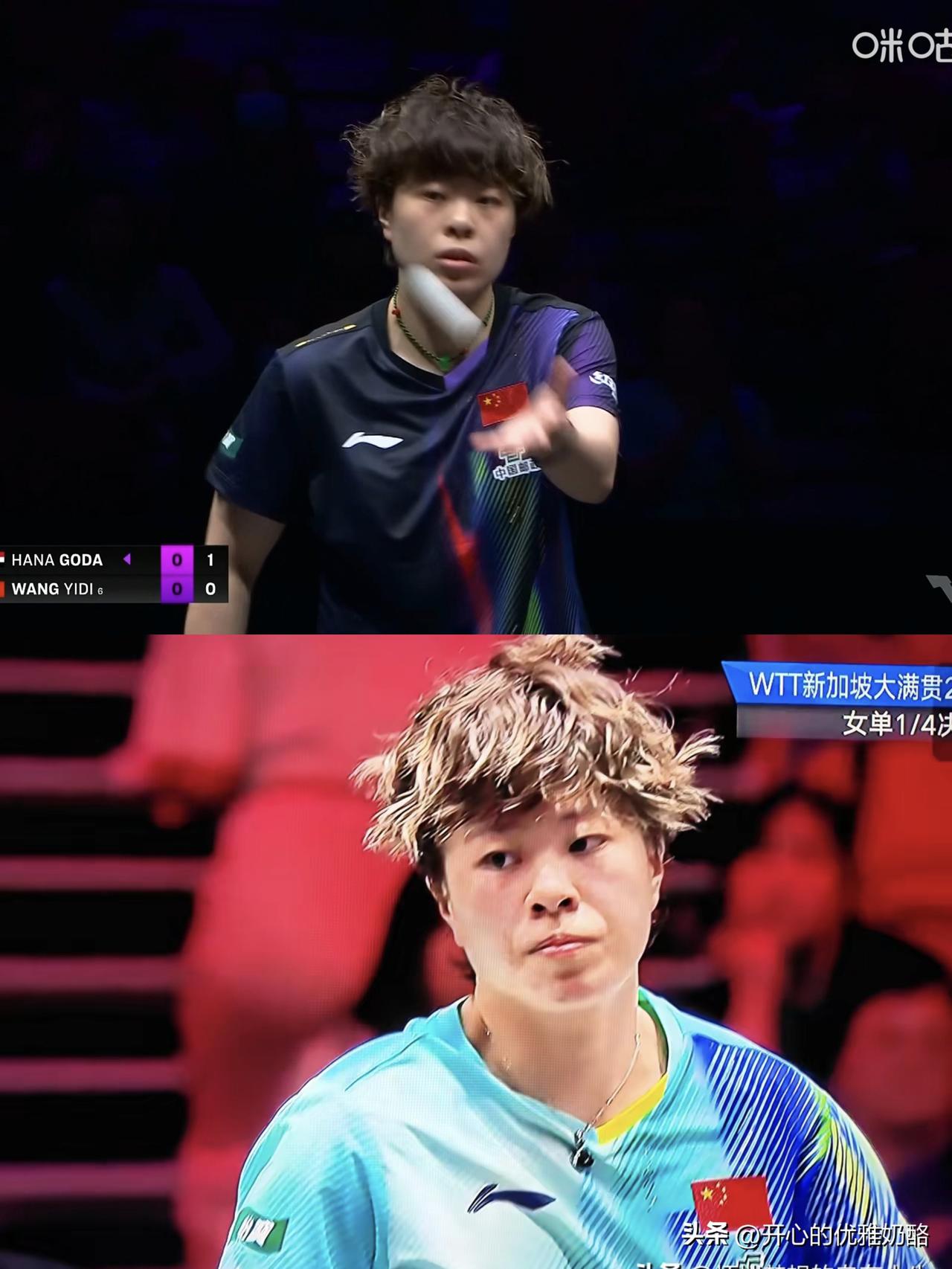 王艺迪学会打理发型了,今天上场看着就很顺眼。 王艺迪出场时,满屏都是迪哥加油。 大迪第一局输了,进入状态有点慢,任皓大喊注意脚下。 第二局王艺迪调整节奏和速度,两个发抢把比分拉开,11-7扳回一局。 第三局大迪掌控住局面,大比分领先,11-4轻松又下一局。 今天场上气氛很好,有节奏大喊王艺迪加油。 高达很可爱,贡献了很多表情包。 第四局大迪开局比分落后,追成9-9、10-10、11-11、13-11拿下。 3-1大迪晋级下一轮。 大迪下一轮很可能对阵温特,必须要做足充分准备,上半区如果能和莎莎会师半决赛,就是最完美的。 图片来自网络侵权可删。
