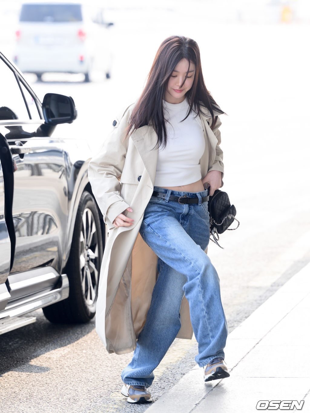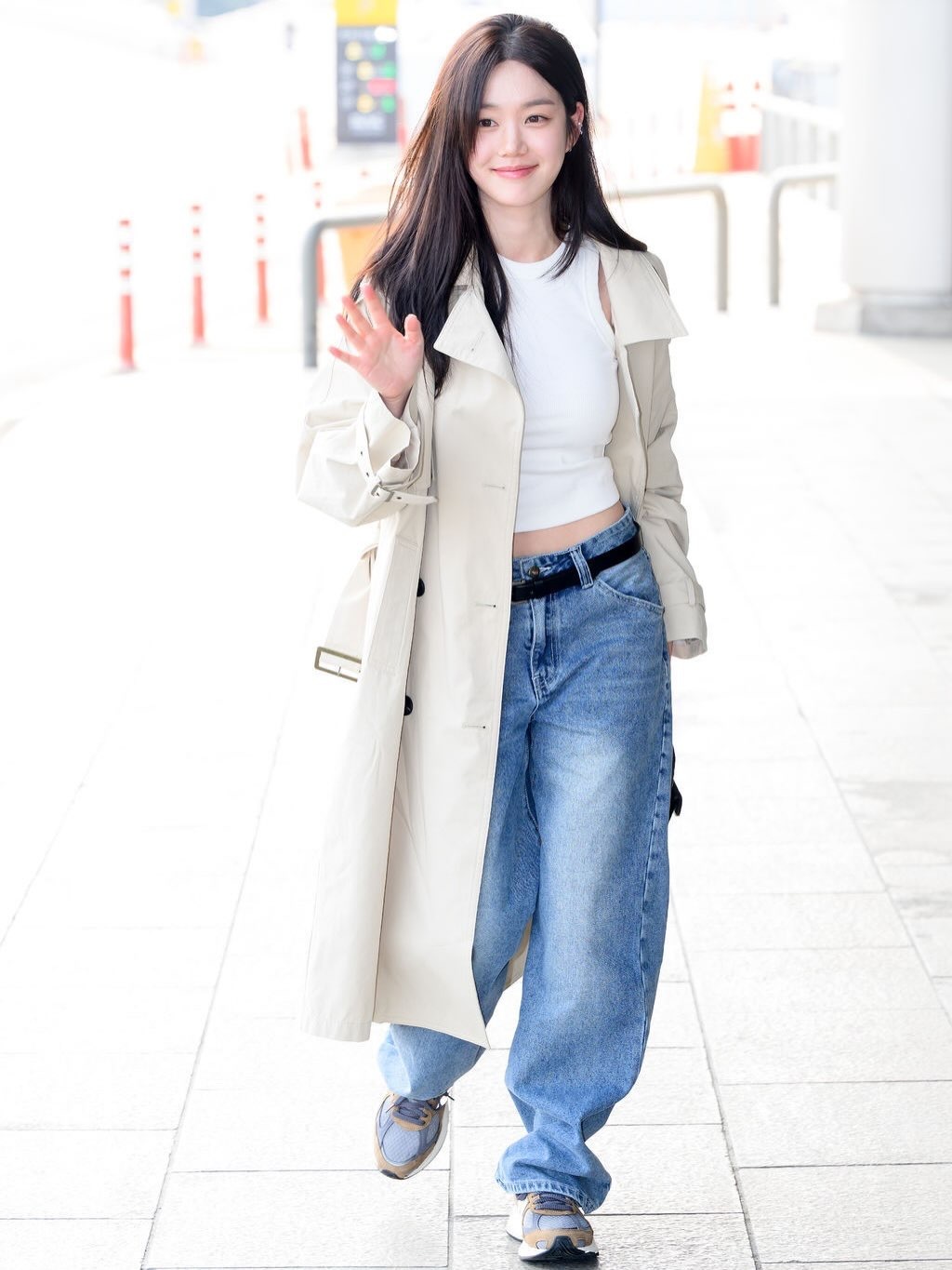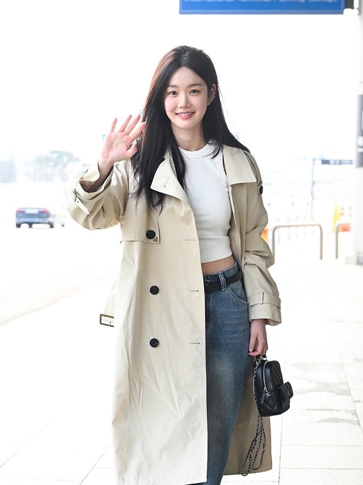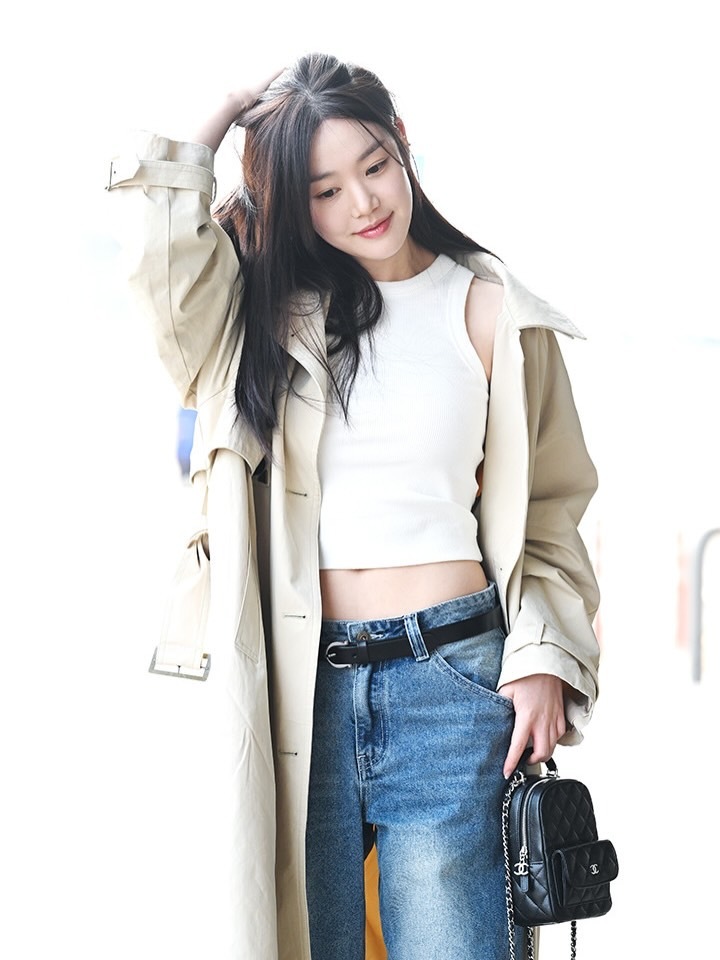 刘亦菲这条裤子挺养生,毕竟降温了肚脐眼必须护住啊