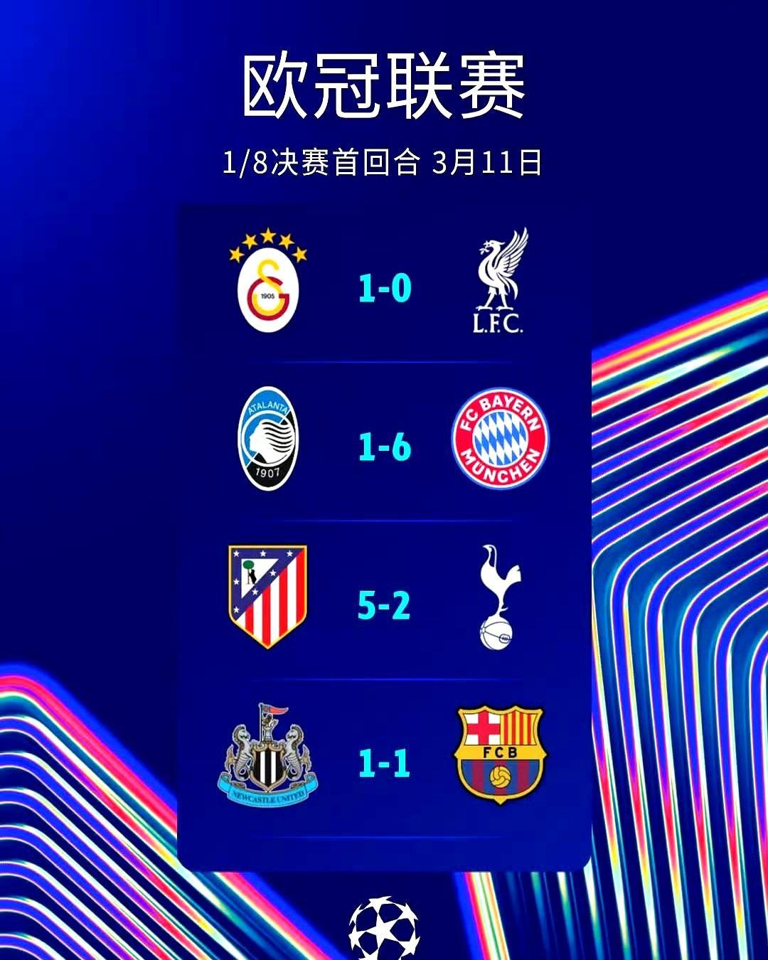 欧冠16强首回合刚结束,半组晋级名额已经定了。 马竞主场5比2拿下热刺,开场17分钟就踢到3比0,热刺门将直接被换下场。 拜仁客场6比1横扫亚特兰大,缺了凯恩也没影响,奥利塞双响早早终结悬念。 这俩队基本已经把八强席位揣兜里,次回合走个过场就行。 另外两场留了活口,利物浦客场0比1小负加拉塔萨雷,只丢一球回主场还有得拼。 巴萨靠亚马尔点球绝平纽卡,带走宝贵客场进球,回诺坎普优势不小。 淘汰赛拼到底还是硬实力说话,偷一场容易,扛两回合太难。 你觉得热刺次回合能创造翻盘奇迹吗?
