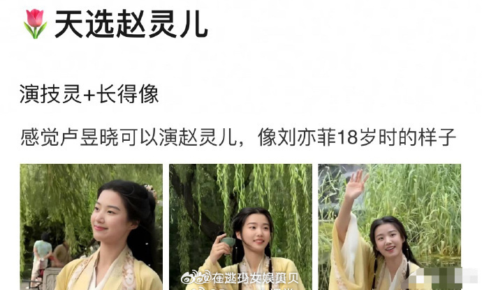 演技灵+长得像,网友问卢昱晓能否胜任赵灵儿这个角色,有刘亦菲18岁时的样子