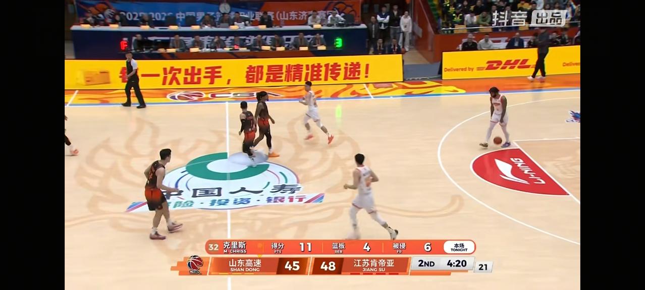 山东高速依靠强硬的防守和克里斯造犯规的11罚11中,第二节在落后14分的不利情况下,实现逆转,上半场以60:54领先江苏肯帝亚。江苏肯帝亚打山东高速还是有一套的,第二节依靠快攻和三分一度领先山东高速14分,要不是犯规过多,山东高速还真不好追上比分,下半场山东高速还是要加强防守,多给新援约翰逊机会,必竟是首场比赛,还没有融入团队,实力是有,就看邱彪怎么用他了。