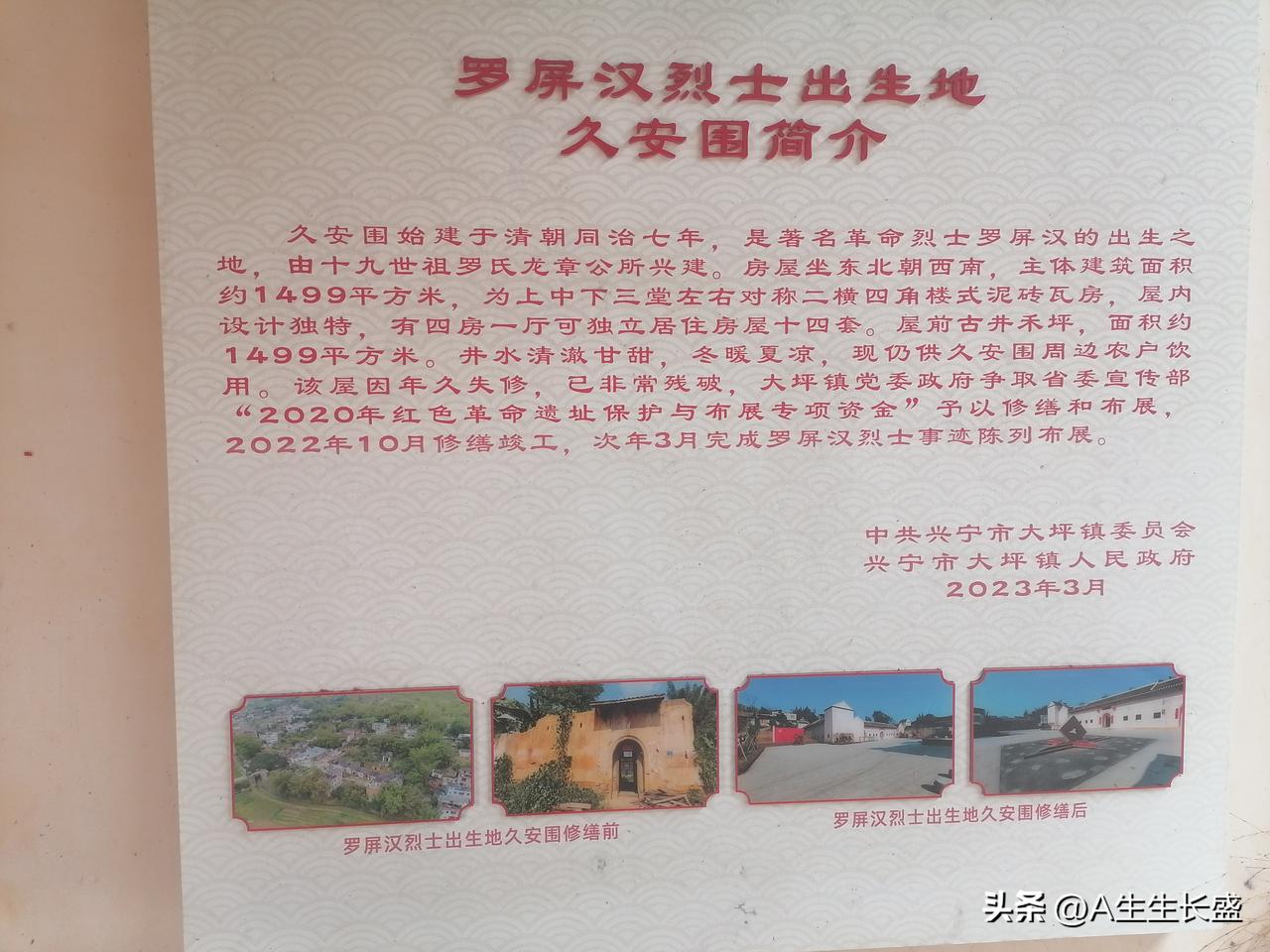 久安围历史悠久,著名革命烈士罗屏汉出生于此,现修缮一新,作为革命历史纪念馆!