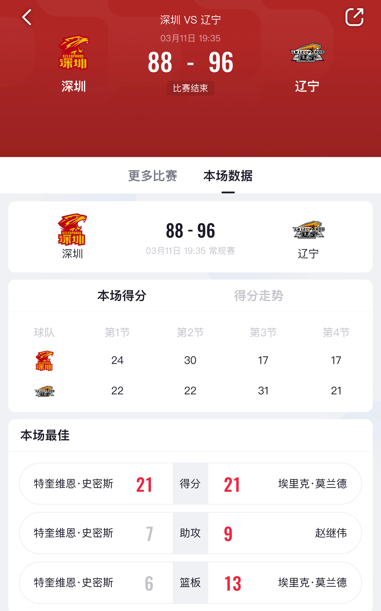 深圳男篮vs辽宁男篮赢了!后天主场见