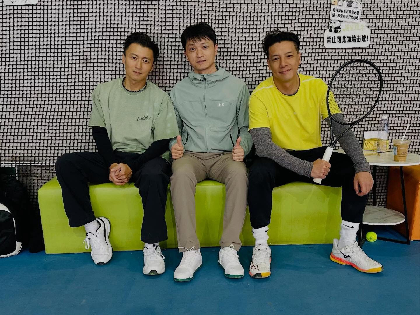 健身教练晒与林峯、张文杰、朱栢康合照