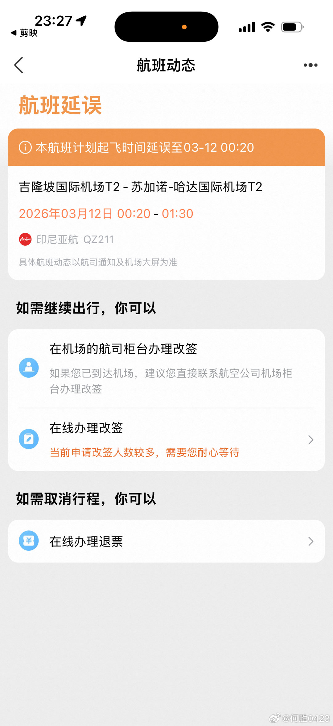 亚航你才真卡点大师啊,原计划22:35降落,先延误到0:55降落,接着又延误到01:30降落,刚打了保险公司电话,如果延误超3小时(以落地时间计算)就可以理赔,现在刚好2小时55分钟,要不你再延误5分钟吧? 马来西亚·马来西亚吉隆坡Kuala Lumpur国际机场