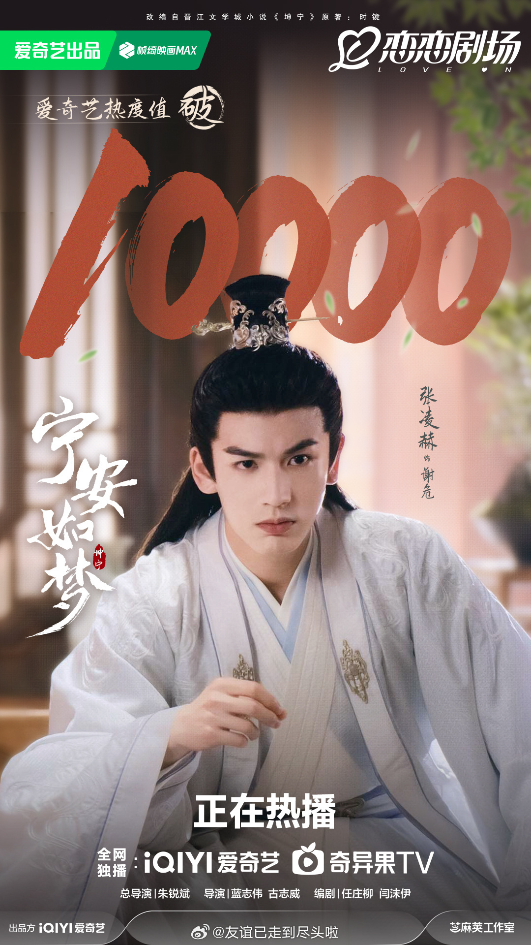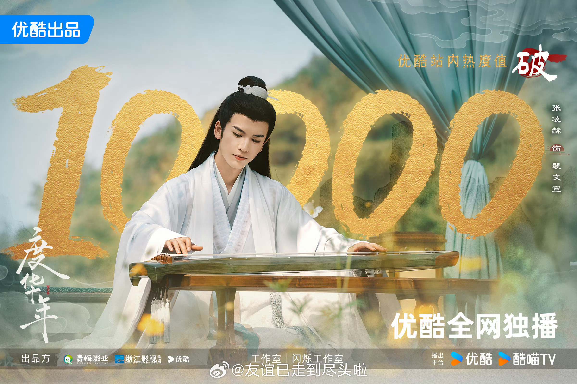 张凌赫达成内娱第三位三平台破万男主,95第一且唯一三平台破万男主逐玉爱奇艺破万 逐玉腾讯破3万逐玉双平台破万