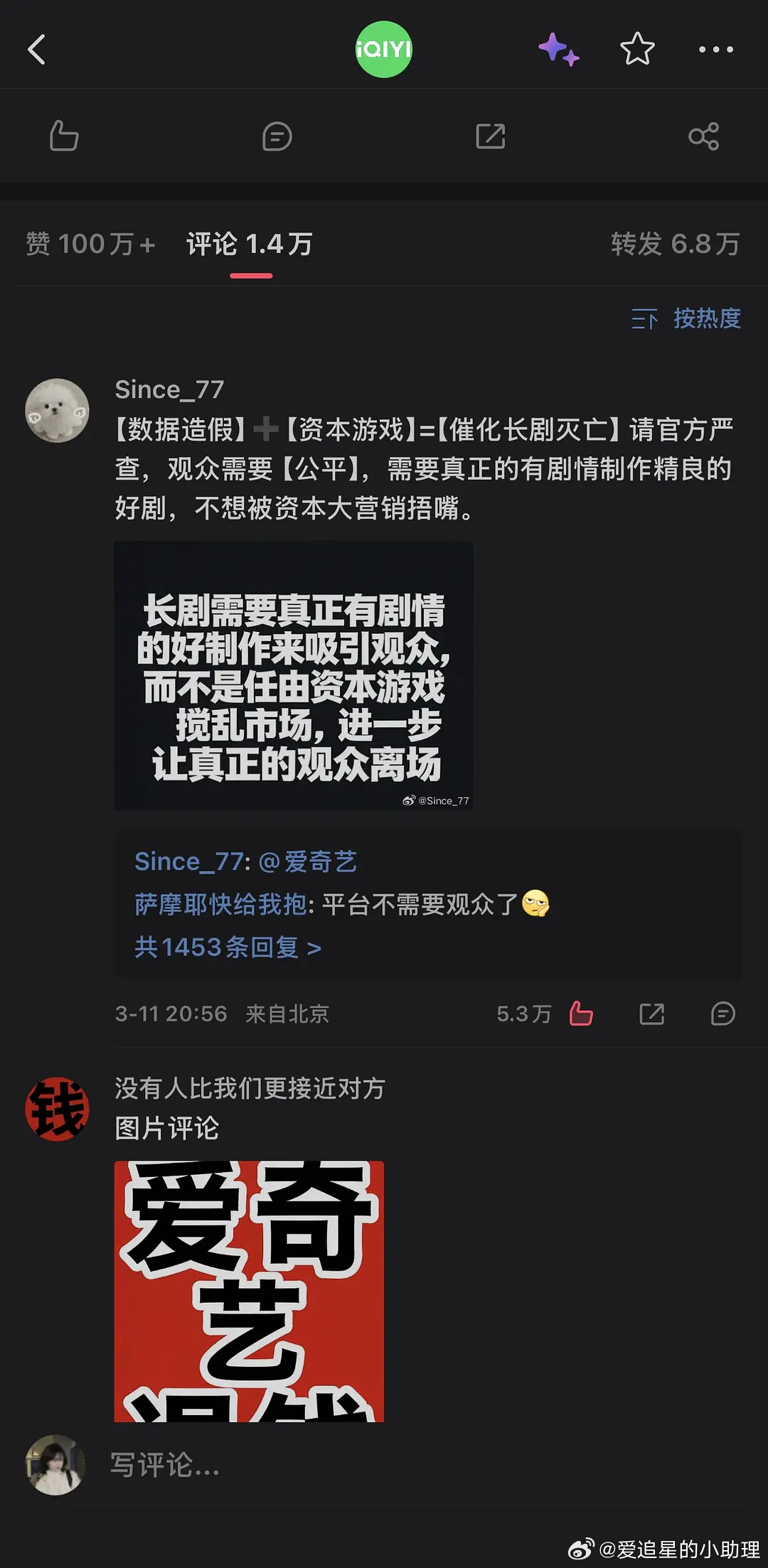 逐玉爱奇艺破万 🥝前排已经完全沦陷了