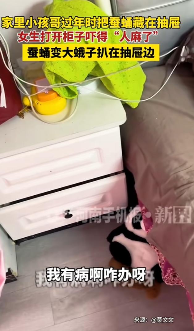 近日,黑龙江,一女子准备炸蚕蛹吃,可她的孩子们看见这些活的蚕蛹,实在不忍心下手,便藏在了女子床头,没想到当孩子再次打开抽屉时,里面的蚕蛹变成了飞蛾,吓得女子直接训斥孩子:你有病啊! 肖女士在春节前夕购置了新鲜的活蚕蛹,打算炸成一道风味独特的年夜硬菜,这在东北的餐桌上本是常见的美味。 饱满的蚕蛹经过油炸后香脆可口,是许多家庭过年时不可或缺的菜肴,然而,这份即将端上餐桌的食材,却因为孩子们的一份善良,意外上演了一场“蜕变惊魂”。 肖女士的孩子们在厨房看到这些活蹦乱跳的蚕蛹时,立刻被这些蠕动的小生命触动了恻隐之心,在孩子单纯的世界里,这些圆滚滚、黄澄澄的小东西并非食材,而是鲜活的生命,想到它们即将被油炸食用,孩子们实在不忍心下手。 于是趁着大人不注意,孩子们悄悄将这些蚕蛹小心翼翼地转移到了肖女士的床头柜抽屉里,既想保住这些小生命,又盼着日后给妈妈一个“惊喜”,随后便渐渐淡忘了这个藏在抽屉里的秘密。 东北的冬季室内暖气充足,室温普遍维持在20℃以上,温暖密闭的抽屉恰好成了蚕蛹生长发育的“温床”,而孩子们和肖女士都未曾意识到,这个善意的举动正在孕育着一场意外。 蚕蛹作为完全变态昆虫的发育阶段,在适宜的温度条件下会自然进入羽化过程,根据昆虫生长规律,蚕蛹在10至15天左右便会完成从蛹到蛾的蜕变,而肖女士家温暖的室内环境,恰好加速了这一自然进程。 大约一个月后孩子偶然想起藏在抽屉里的蚕蛹,便打开抽屉想要看看它们的状况,没想到眼前的景象让孩子瞬间惊呆了:原本的蚕蛹早已不见踪影,取而代之的是几只翅膀展开的大飞蛾。 孩子急忙叫来肖女士查看,肖女士刚靠近抽屉,就被眼前的情景吓得头皮发麻、浑身起鸡皮疙瘩,她每天都在床头柜旁睡觉,从未想过抽屉里竟藏着这样一群“不速之客”。 想到这些飞蛾可能在自己熟睡时悄然活动,肖女士又惊又气,下意识地训斥了孩子,母女俩都对飞蛾充满畏惧,站在一旁不敢靠近,狭小的卧室里,飞蛾扑腾翅膀的声音更增添了几分慌乱。 无奈之下肖女士只好求助邻居帮忙,热心的邻居赶来后,用工具小心翼翼地将抽屉里的七八只飞蛾和剩余的蚕蛹壳全部清理干净,前后忙活了半个多小时才彻底解决问题。 这场意外的“惊喜”最终在邻居的帮助下平息,肖女士虽被吓得不轻,但也理解了孩子们的善良初衷,事后回想起来,这场小风波其实是自然规律与生活习惯碰撞出的趣事。 东北冬季室内外巨大的温差,让本应在低温下休眠的蚕蛹误将暖气房当作春天,从而启动了羽化程序,而孩子们的善意藏蛹行为,虽引发了一场小小的惊吓,却也让人们看到了孩童心中纯粹的生命关怀。 这起真实的生活事件,既展现了自然生命的奇妙蜕变,也流露着家庭生活中啼笑皆非的温情,成为了这个春节里一段难忘的小插曲。
