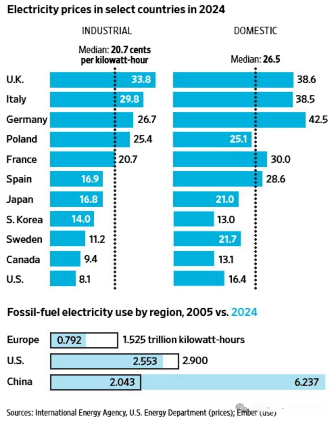 欧洲采取的激进能源转型策略虽使碳排放较2005年下降30%,却导致德国与英国的工业电价飙升至发达经济体最高水平(约为美国的两倍)。这一结构性成本冲击正引发实质性的去工业化与技术停滞:英力士(Ineos)与埃克森美孚(ExxonMobil)相继关闭化工设施,爱尔兰与法兰克福因电力短缺被迫叫停或推迟AI数据中心扩容。其中的核心矛盾在于间歇性绿能导致的系统冗余成本激增(如英国Seagreen风电场因电网瓶颈停运仍获补贴),使得实际用电成本远超批发价格。面对高盛预测的未来十年3万亿欧元基建缺口及民众生活成本危机,欧洲政治共识开始出现裂痕,迫使德国等国不得不重新规划天然气发电以稳定工业基础来源:华尔街日报