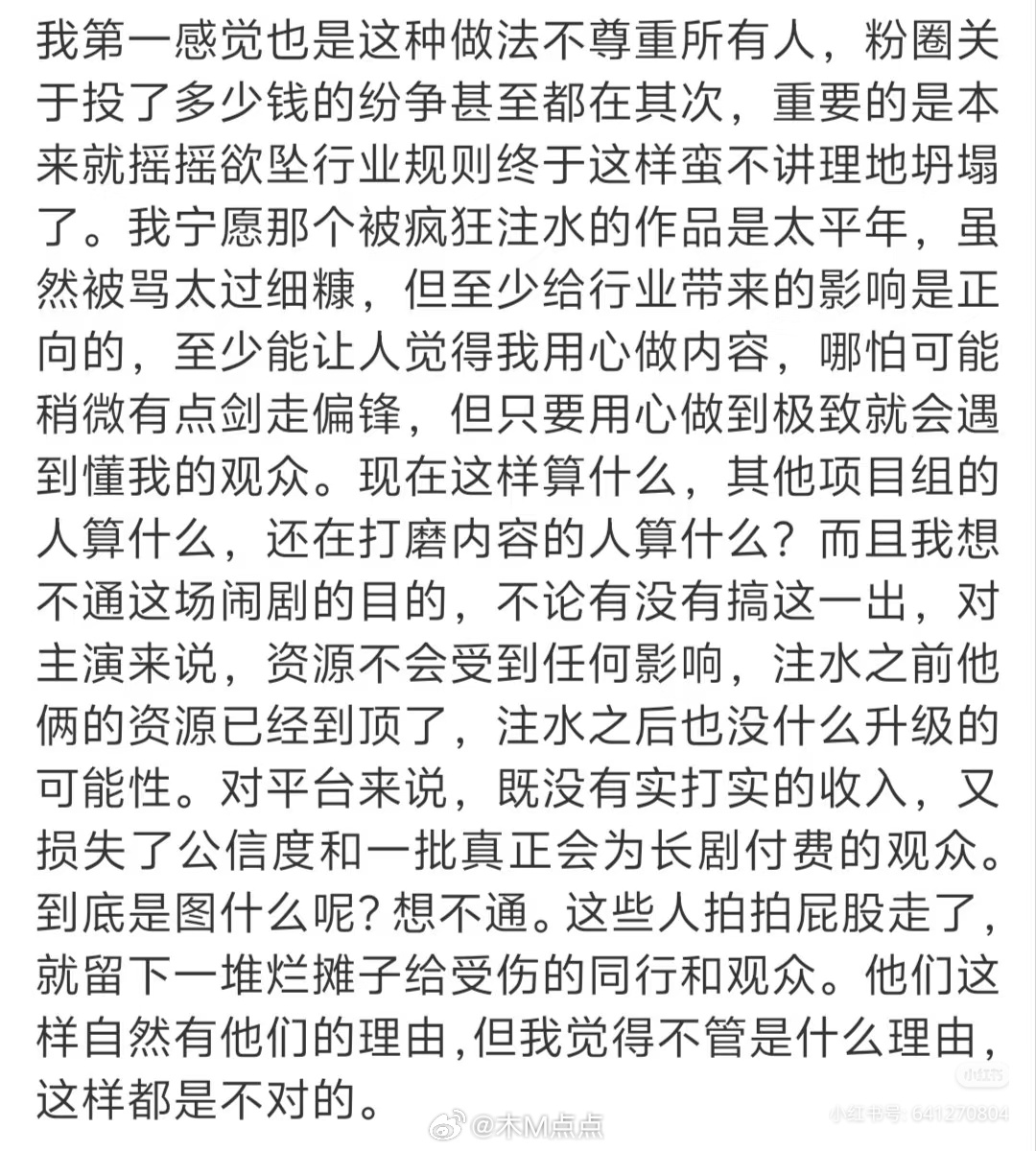 长剧瓜主旺仔注销停更了,下一部接档的剧可咋办啊?真的吗?没怀疑他是业内的意思。但我以为瓜主多多少少是想赚钱的!没想到这么有气节~寒了多少人的心啊…从制作人导演编剧……这些业内到买大量云包场的粉丝,心都寒透了只要是真手搓过数据氪过金的粉丝都会寒心唉