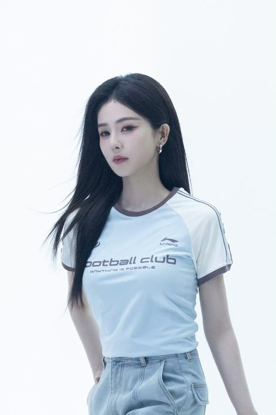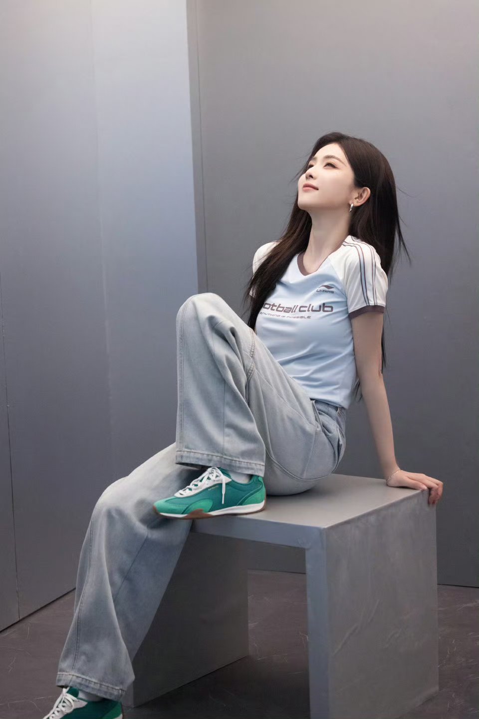 刘亦菲这条裤子挺养生,毕竟降温了肚脐眼必须护住啊