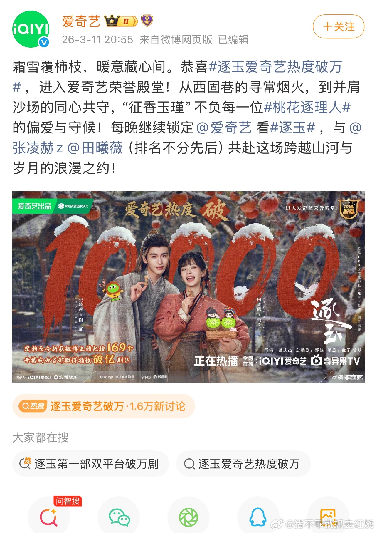 爱奇艺恭喜逐玉破万微博的评论区真的惹众怒了,最高赞都有6万了然鹅我们爆剧的粉丝连评论区都控不住,只能轮转发控转发区