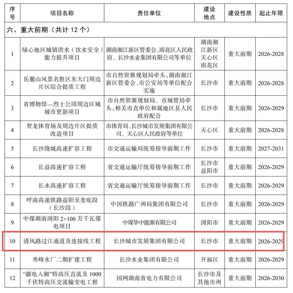 科学统筹谋定后动 清风路大桥蓄力待发 长沙南部融城交通蓝图稳步落地 长沙市2026年重点建设项目清单公布后,清风路过江通道(清风路大桥) 由新建项目调整为重大前期项目,建设时序迎来优化暂缓。这一调整并非项目停滞,而是立足南部片区开发节奏、资金统筹效率与工程建设时机的科学谋划,旨在让这座跨江通道在最优条件下落地见效、赋能发展。 据官方回应,清风路大桥目前已完成通航影响审批这一关键节点,防洪评价、水土保持、环境保护等专项论证正有序推进。因项目需跨越湘江、下穿京广铁路,技术复杂度高、实施标准严格,后续将结合长沙南部片区开发时序,尤其是奥体新城建设进度,择机启动建设,确保工程与城市发展同频共振、高效协同。 作为长沙南部重要跨江通道,清风路大桥规划亮点突出、功能复合。项目定位城市结构性主干路,设计时速60公里,双向八车道;桥梁全长约3.63公里,主桥采用双塔双索面斜拉桥设计,最大跨径360米,桥面宽度拓宽至51.5米,通行能力大幅提升。项目创新构建“跨江大桥+下穿隧道+地面道路”立体交通体系,东岸配套1.24公里下穿京广铁路隧道,实现铁路与城市道路各行其道;同时在桥面预留应急给水管道,兼顾交通出行与城市供水安全,是兼具实用性与前瞻性的复合型工程。 项目区位优势显著,地处大王山旅游度假区、湘江科学城与南部融城片区几何中心,西起潭州大道,向东跨越湘江后无缝对接湘江大道、天心大道等主干路网。建成后,大王山片区至长株潭融城核心区域通行时间将缩短至10分钟左右,既能有效缓解湘府路大桥交通压力,也能为奥体新城承接文体赛事、集聚产业人流提供坚实交通保障,进一步完善长沙城南过江交通格局。 从城市发展全局来看,适度暂缓并非消极等待,而是理性务实的发展选择。项目总投资规模较大,与片区开发节奏同步推进,可实现资金使用效益最大化,避免资源错配。当前,暮坪湘江特大桥、南横高速跨江大桥等南部跨江通道正加速建设,长沙南部过江交通网络正梯次落地、协同成网,为区域发展提供持续支撑。 清风路大桥前期工作稳步深化、规划方案持续优化,其串联两岸、赋能融城的核心使命始终未变。待时机成熟,项目将以更完善的准备、更成熟的条件启动建设,成为支撑长沙南部片区崛起、服务长株潭一体化发展的关键交通载体,助力城市向南拓展更高质量的发展空间。