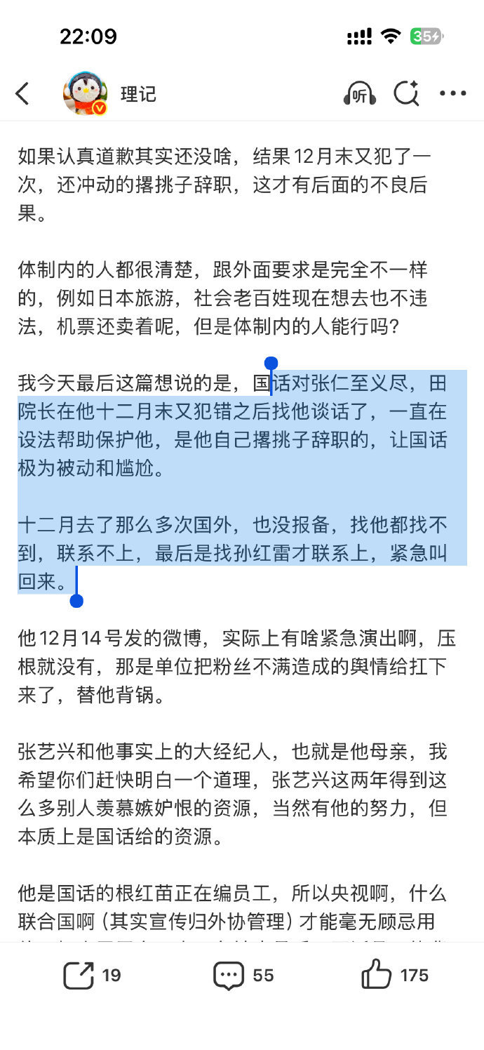 理记又发了长文谈张艺兴...