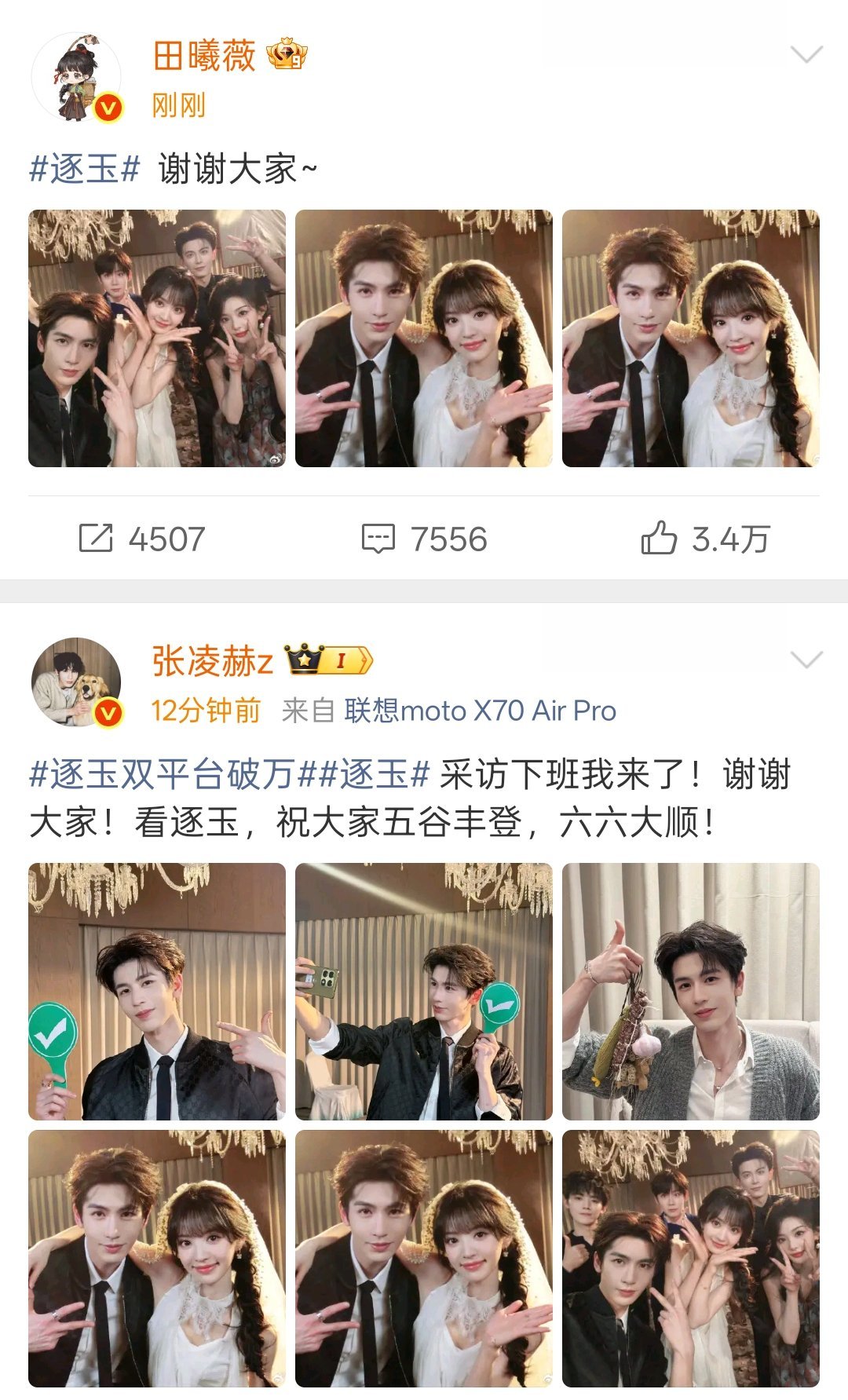 张凌赫田曦薇逐玉破万发文张凌赫田曦薇回应逐玉破万 张凌赫:采访下班我来了!谢谢大家!看逐玉,祝大家五谷丰登,六六大顺!田曦薇:谢谢大家!!头纱合照真来了!!逐玉双平台破万