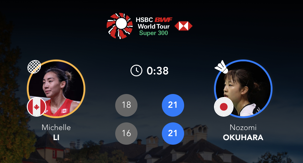 奥原希望🇯🇵 21-18、21-16 🇨🇦李文珊