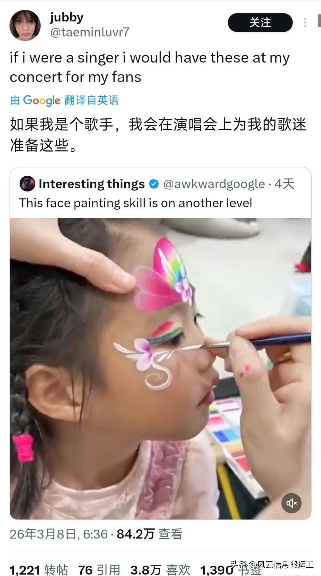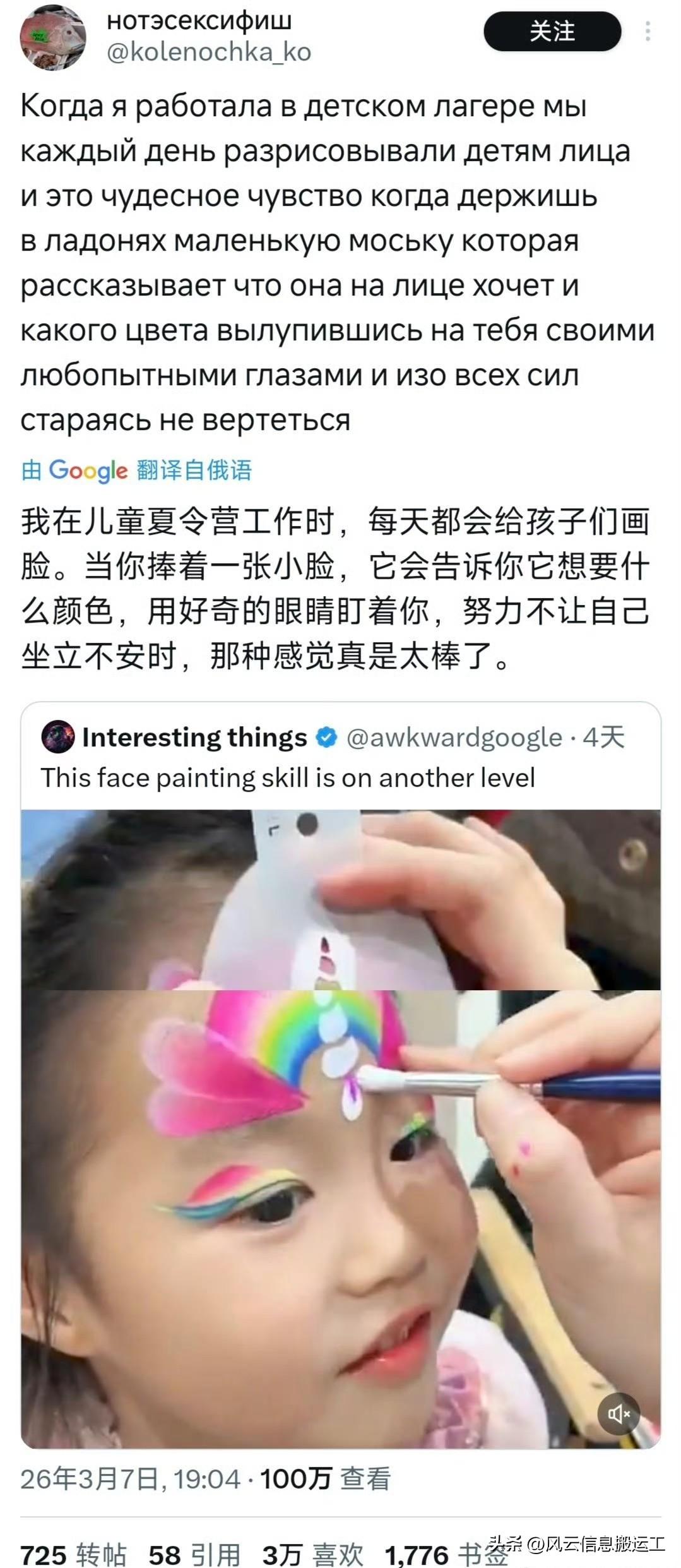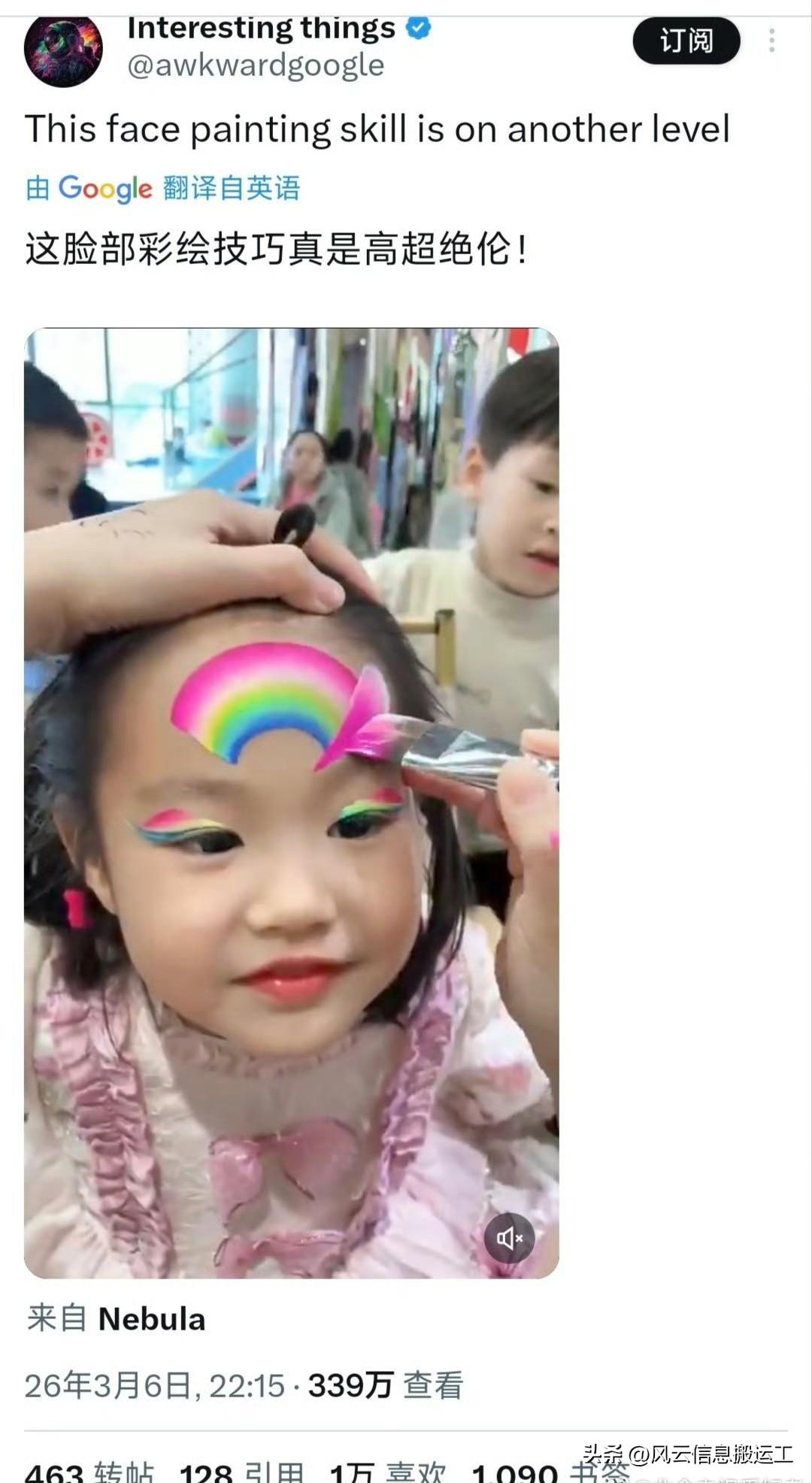 中国幼儿园小朋友的脸部彩绘视频获得国外众多网友的夸赞!
