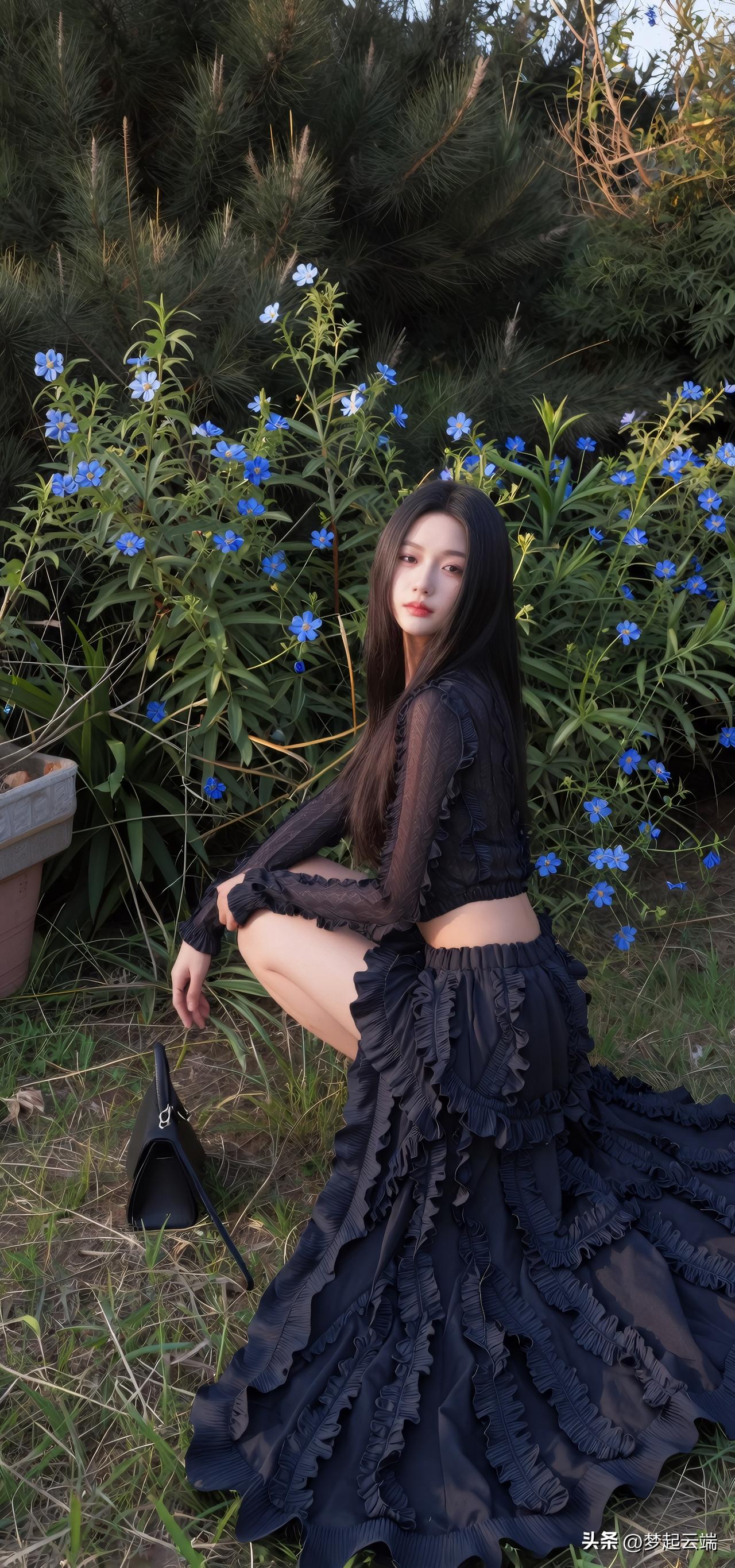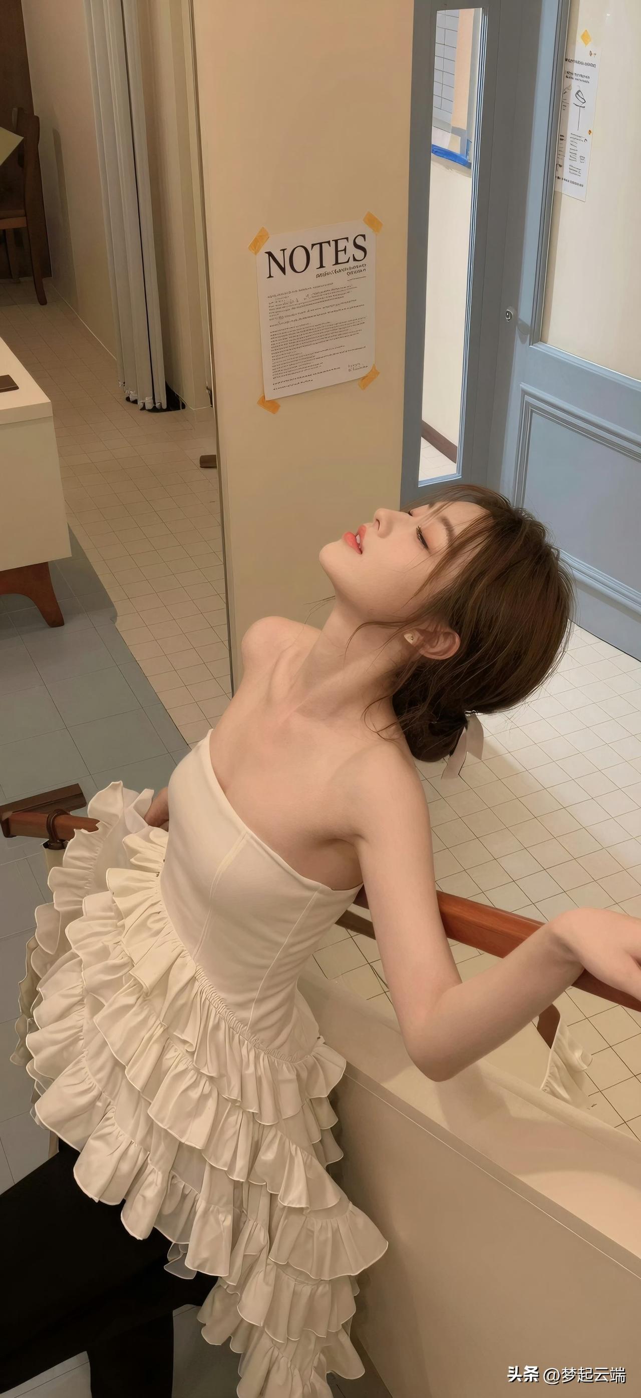 樱花树下,甜美少女,粉色花裙,春日浪漫。