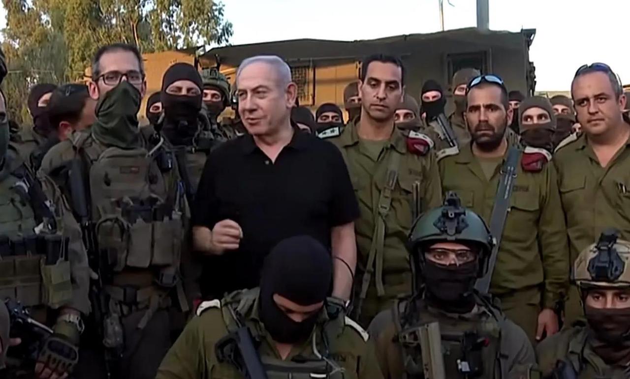 战争是残酷的,事关生死存亡。内塔尼亚胡和士兵们在一起,不是谈笑风生,而是严肃认真