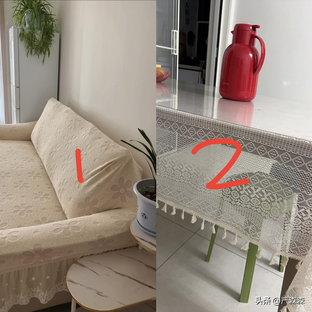 一种很奇怪的现象 有些家庭特别喜欢用各种罩子 比如我二姨家,沙发上套着套子,床上铺着床盖,餐桌和茶几上铺着桌布,椅子和小凳子上都有垫子,门上挂着纱帘,而且还是那种蕾丝花边的。 二姨的每个手机都套着手机壳,花花绿绿,过一两个月就会换一个。 这么些年去她家,从来不知道她家的家具和床品到底是什么颜色的。 而且这几年我注意到,不少女性家里都有类似操作,什么都喜欢买个罩子包着,说是保护。 我一直想不通,这个完全没必要啊,我们在选家具或者家电时,我们看到喜欢的款式和颜色,才会下单。 明明是自己很喜欢的样子,为什么又要包裹起来呢,一包起来,岂不是掩盖了本身的美吗? 我是个比较随意的人,从不用手机壳,不用桌布,床盖,沙发垫,一切都是家居用品本来的样子,喜欢简洁明了,看着舒服,又不用过多清洁。 我想问问买盖布的朋友,为什么喜欢买那些罩子呢?