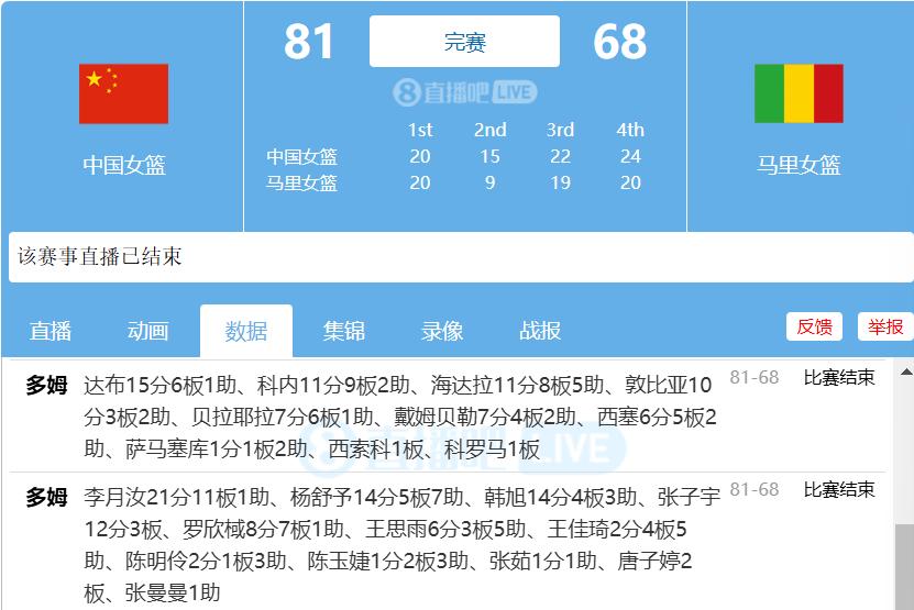 内线三塔合砍47分,中国女篮“以胜代练”险中求胜 昨晚,武汉体育中心体育馆响起了熟悉的助威声。在2026年女篮世界杯资格赛的首场较量中,中国女篮以81比68击败非洲劲旅马里队,顺利取得“开门红” 。相比于最终13分的分差,比赛过程远比比分显示的更具张力。 这不仅是通往世界杯的第一步,更是这支新老交替的球队在正式大赛中的第一次“实战演练”。 艰难的“首秀”:从落后到掌控 或许是由于久疏战阵,中国女篮的开局显得有些紧繃。面对身体素质出色、拼抢凶悍的马里队,中国队一开场便被对手打了个8比2 。非洲亚军用极快的反击速度和冲抢篮板能力,给主场作战的中国队来了个下马威。 关键时刻,还是老将稳住阵脚。首节比赛,韩旭几乎包办了球队的前9分,用高效的半截篮和内线强打帮助球队咬住比分 。首节结束,双方战成20平。这一节清晰地反映出球队的“慢热”习惯——在拥有绝对身高优势的情况下,中国队未能第一时间将优势转化为胜势,反而陷入了马里队的节奏泥潭。 “三塔”的威力与成长的代价 如果说上半场是适应与纠缠,那么下半场则真正展现了中国女篮的立队之本——内线。 本场比赛最引人注目的无疑是李月汝的回归首秀。时隔近两年重披国家队战袍,“小宝”交出了一份21分、11篮板的华丽两双答卷 。她在第四节的连续“2+1”,几乎一锤定音,展现了在WNBA历练后更加强硬的对抗能力 。而韩旭贡献14分,两人组成的“双塔”在第二节和末节多次同时登场,瞬间提升了攻防两端的控制力 。 更令人欣喜的是小将张子宇的成年国家队世界大赛首秀。这位被外界称为“女版姚明”的19岁小将,虽然防守移动速度被对手针对性攻击,但全场依然砍下12分,包括首节的压哨两分和末节与老将王思雨配合后的篮下轻松得分 。李月汝、韩旭、张子宇三人合砍47分,这一内线数据足以让任何对手艳羡 。 然而,胜利之下,隐患同样暴露无遗。面对身高远逊于自己的马里队,中国女篮在篮板球上竟以42比44落后 。此外,全队三分球28投仅7中的命中率,也说明在外线投射这一环节,球队仍有很大的提升空间 。 不止于胜利的“开门红” 赛后,宫鲁鸣指导坦言“球队还没有完全放开” 。这并非苛责,而是事实。从战略角度看,这场稍有波折的胜利,其价值或许远超一场酣畅淋漓的大胜。 正如韩旭所言,“今天是一个很好的以赛代练的情况” 。 对于志在长远、着眼2028奥运周期的中国女篮而言,资格赛的目标绝不仅仅是“抢票”。通过正式比赛让李月汝找回比赛感觉,让张子宇适应国际对抗强度,让新老球员在实战中建立默契——这些“隐形财富”远比一场虐菜局更有意义 。 队长杨舒予此役贡献14分、5个篮板和7次助攻的全面数据,她在对手追分阶段的关键三分稳住了军心,展现出作为新领袖的担当 。而王思雨在场上对年轻球员的节奏带动,也体现了老将的传帮带作用 。 拿下马里只是第一步。根据赛程,中国女篮将在今晚迎战本组实力最强的欧洲冠军比利时队 。那场比赛,才是对中国女篮“以胜代练”成果的真正考验。若能顶住欧洲强队的冲击,这支拥有豪华内线群的新女篮,才能真正宣告自己的回归。