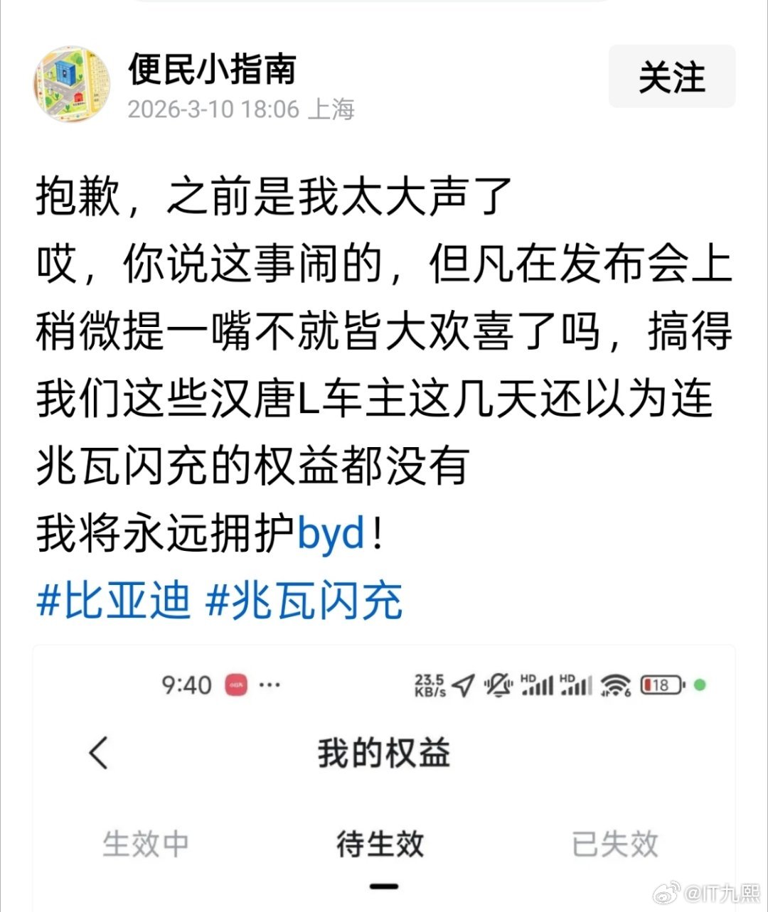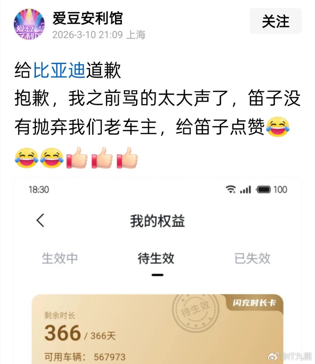 比亚迪这波操作真圈粉,前几天汉唐L老车主还在为没享受到兆瓦闪充权益生气,结果3月9号比亚迪直接送上一年免费闪充权益!