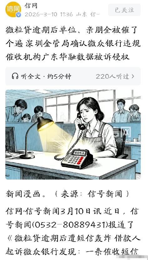 广东深圳,女子着急用钱,就连续在微粒贷上借了两笔,分别是4万元和2.5万元。可事后没能按时还款,竟收到了平台的短信轰炸,最多的一天有十几条,就连单位同事和亲朋好友都被催了个遍。女子被折磨得受不了,一纸诉状告上法庭。经过法院深入调查,这才发现,给她发短信的竟然有6家公司,更可怕的是,仅其中一家公司,就将自己的个人信息转卖了7遍,这让女子后怕不已。 女子在深圳工作,前段时间家里突发急事,急需一笔钱应急,一时凑不齐,就想到了手机里的微粒贷。她之前偶尔用过几次,觉得放款快、操作方便,没多想就连续借了两笔,一笔4万元,一笔2.5万元,约定好分期还款,想着缓一缓就能慢慢还清。 可天不遂人愿,借完钱没多久,女子的工作出现变动,收入大幅减少,原本计划好的还款计划被彻底打乱。到了还款日,她实在凑不齐当期还款,只能眼睁睁看着借款逾期。一开始,她还想着跟微粒贷平台沟通,说明情况,申请延期还款,可尝试联系了几次,都没得到明确回应。 逾期没几天,催款短信就找上门来了。一开始只是一天两三条,大多是1068、1069开头的虚拟号码,内容都是催促她尽快还款,还暗示如果不还,会影响征信、上门催收。女子看着短信,心里又急又慌,只能拼命想办法凑钱,可一时半会儿根本凑不齐。 没想到,催款短信越来越频繁,到后来,最多的一天能收到十几条,不分白天黑夜,哪怕是凌晨一两点,也会有短信发来,吵得她根本睡不好觉。更让她崩溃的是,催款的人不仅盯着她,还找到了她的单位同事和亲朋好友。 给他们发催款短信、打骚扰电话,把她逾期借钱的事闹得人尽皆知。同事们看她的眼神变得异样,还有人私下议论,让她在单位抬不起头。 亲朋好友也频频给她打电话询问情况,有的担心她,有的则觉得她不懂事,乱借钱。女子被这些短信、电话和流言蜚语折磨得精神恍惚,上班没心思,吃饭没胃口,整个人都快垮了。 她尝试再次联系微粒贷平台,要求对方停止短信轰炸,不要再骚扰自己和身边的人,可平台要么敷衍回应,要么干脆不接电话。 女子忍无可忍,觉得自己的合法权益被严重侵犯,干脆收集好所有的催款短信、通话记录,一纸诉状,把微粒贷的运营公司以及相关催款方告上了深圳市宝安区人民法院,要求对方停止侵权、公开道歉,并赔偿自己的精神损失。 法院立案后,很快就介入调查,调取了相关的短信发送记录、公司合作合同等证据。这一查,彻底揭开了背后的真相。 让女子既愤怒又后怕——原来,给她发送催款短信的,根本不是微粒贷平台本身,而是6家不同的公司,这些公司都声称和微粒贷有合作,是平台提供了她的个人信息和催款内容,他们只是负责发送短信。 更可怕的是,法院在调查中发现,这6家公司之间还存在层层转手的情况,并没有一家能提供和微粒贷直接签订的合作合同,也没有完整的授权链条。 其中一家广州的公司,在答辩时承认,他们的催款业务是从另一家公司接手的,而追溯上去,整个业务链条竟然有7家公司,也就是说,这家公司单单这一次,就把女子的个人信息转卖了6次,先后经过7家公司之手。 女子得知这个消息后,浑身发凉。她想起自己在微粒贷借款时,只提交了身份证、手机号、通讯录等个人信息,没想到这些信息竟然被如此随意地转来转去,她根本不知道自己的信息还被多少人掌握,以后会不会被用来做更可怕的事情,想想都觉得后怕。 庭审中,微粒贷运营公司提出了和解,愿意减免部分利息、免除部分债务,希望女子能撤诉,但被女子果断拒绝了。她明确表示,借贷逾期是她的问题,她愿意承担相应的还款责任,但平台和这些催款公司违法催收、转卖个人信息,是另一件事,不能混为一谈,她一定要讨回公道。 法院经过审理后认为,微粒贷运营公司将女子的个人信息委托给第三方催款公司,而这些催款公司又层层转手,将个人信息多次转卖,违反了相关法律规定。 同时,频繁发送催款短信、骚扰女子及身边人,也侵犯了女子的隐私权和名誉权。6家催款公司未尽到审慎审核义务,参与违规催收和信息转卖,也需承担相应的侵权责任。 最终,法院判决微粒贷运营公司及6家涉事催款公司停止侵权行为,向女子公开书面道歉,赔偿女子精神损害抚慰金,同时要求涉事公司删除所有留存的女子个人信息。 整改违规催收行为。此外,相关监管部门也对微粒贷运营公司进行了约谈和处罚,要求其加强个人信息保护,规范催款流程,杜绝此类事情再次发生。 网贷平台不能只追求利益,而忽视了责任和底线。个人信息是每个人的隐私,不是可以随意转卖的商品,平台既然掌握了借款人的个人信息,就有义务妥善保管,规范催款流程,不能放任第三方公司违法催收、转卖信息。一旦出现违规行为,就应该受到严厉处罚,只有这样,才能起到震慑作用。