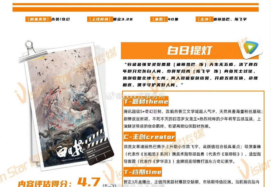 迪丽热巴、陈飞宇《白日提灯》双招商来了!贺思慕快来