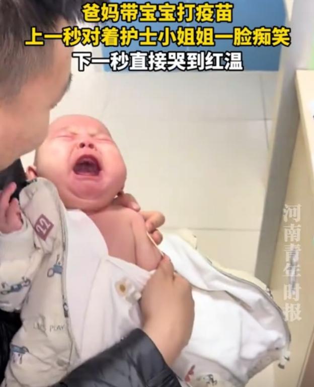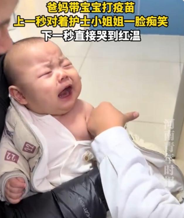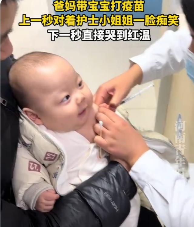 4个月萌娃打疫苗火上人民日报!前一秒笑靥如花,下一秒秒变“红脸小哭包”,网友:笑不活了 谁能想到,山东一个才4个月大的小萌娃,仅凭打疫苗的名场面,直接火上了人民日报! 画面里的小宝宝,软乎乎、肉嘟嘟,还没打针时,睁着圆溜溜的大眼睛,对着温柔的护士阿姨笑个不停,小嘴巴弯弯的,一脸天真无邪,仿佛在说:“阿姨,我超乖的~”那治愈的笑容,瞬间戳中了所有人的心,隔着屏幕都想伸手捏捏他的小脸蛋。 可万万没想到,甜蜜的时光只持续了一秒。针头刚轻轻扎进皮肤,小家伙脸上的笑容瞬间“冻结”,眉头一皱,嘴巴一瘪,下一秒就红温大哭,眼泪汪汪、哭声嘹亮,从“治愈小天使”秒变“委屈小哭包”,反差感直接拉满! 这一幕被家长拍下来发到网上,瞬间引爆全网。评论区更是笑翻一片,网友们齐刷刷留言:“看到娃最后哭了,我满意的笑了”“这才是打疫苗的正确打开方式”“人类幼崽的变脸速度,比翻书还快”! 看似是一则搞笑的日常,却藏着最真实的人间温暖。没有惊天动地的大事,就是这普普通通的育儿瞬间,勾起了无数家长的回忆——谁家娃打疫苗不是这样?前一秒乖巧,后一秒崩溃,哭完转头又忘得一干二净。 这简单的快乐,最能治愈人心。也正是这些平凡又可爱的瞬间,让我们感受到生活的小美好,忍不住嘴角上扬。你家娃打疫苗,是不是也有这样搞笑又暖心的名场面?评论区聊聊~小宝宝上热搜 宝宝打针恐惧
