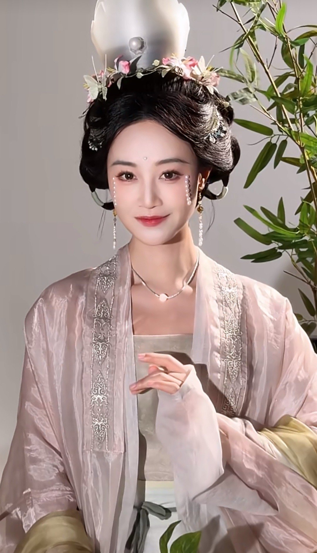 蓝盈莹宋式泪妆 她看镜头的那一眼,眼里有光脸上有妆。珍珠点缀在眼角,像是把江南的烟雨都收进了眉眼间。蓝盈莹老祖宗顶级审美