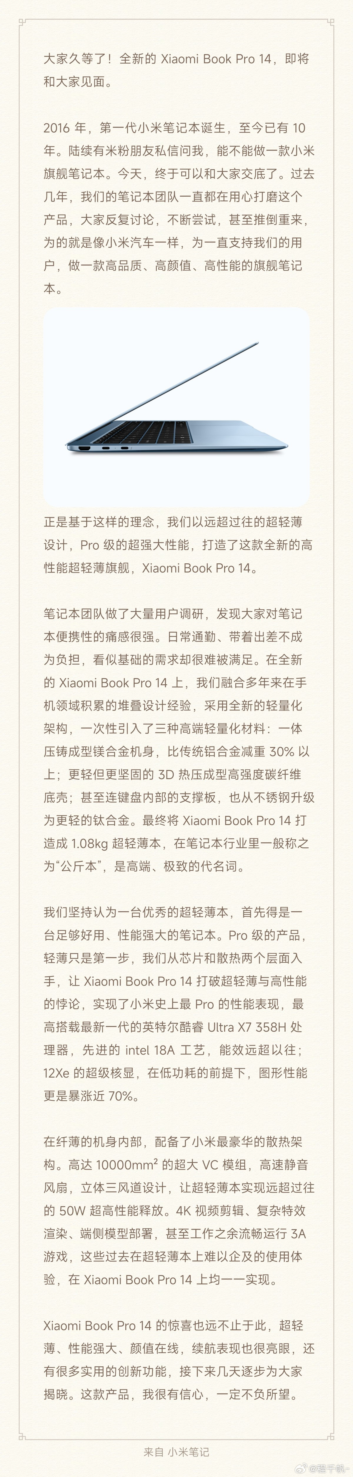 小米品牌时隔四年重新发布笔记本